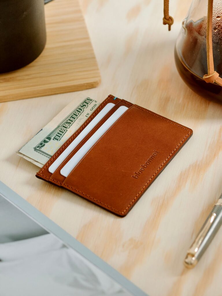 Loyal Stricklin’s smallest and thinnest wallet, is the perfect no-frills option for those who want to carry just the essentials. Slip a card or two into the front pocket and a few more into the middle pocket, and use the thumb opening to easily slide cards out when you need them.