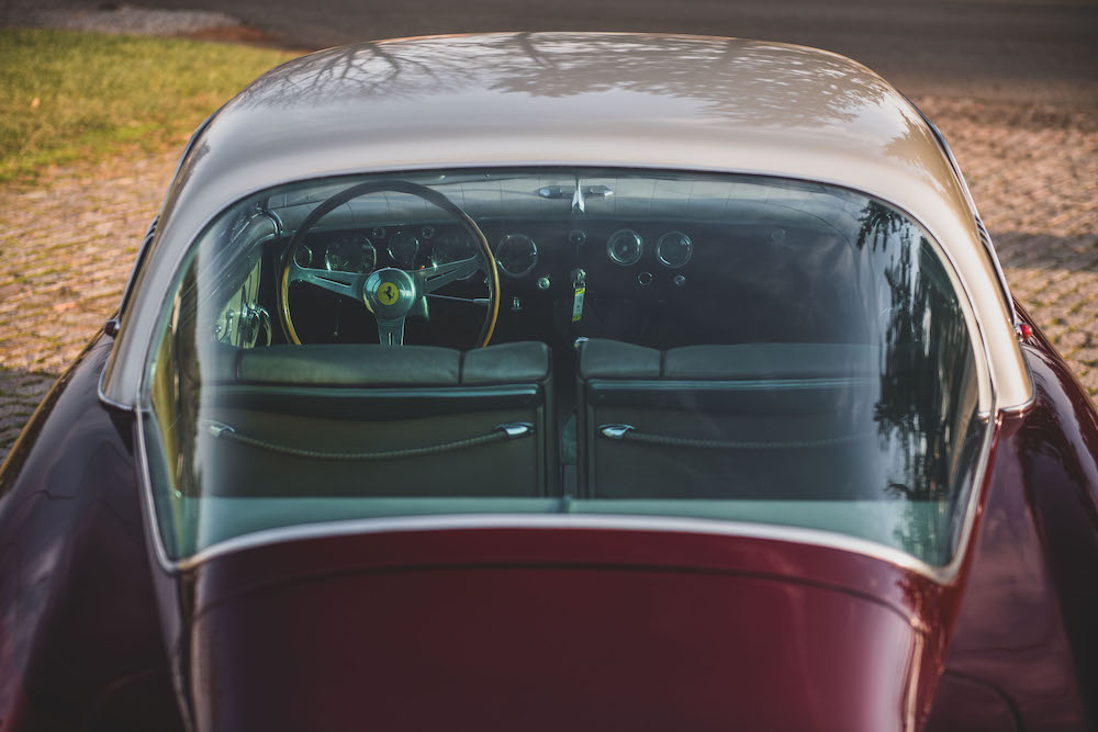 As the price tag probably prompts you to believe, this 1954 Ferrari 375 America Coupe by Vignale is in a remarkable condition. It wears its two-tone livery, very similar to the colours in which was first shown in New York and Geneva. The car’s primary exterior colour carries on into the cabin, where it appears on the dashboard and in the piping of the beige interior upholstery.