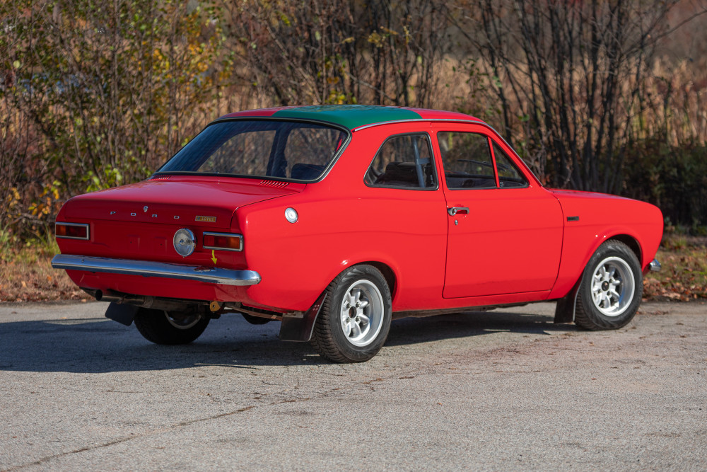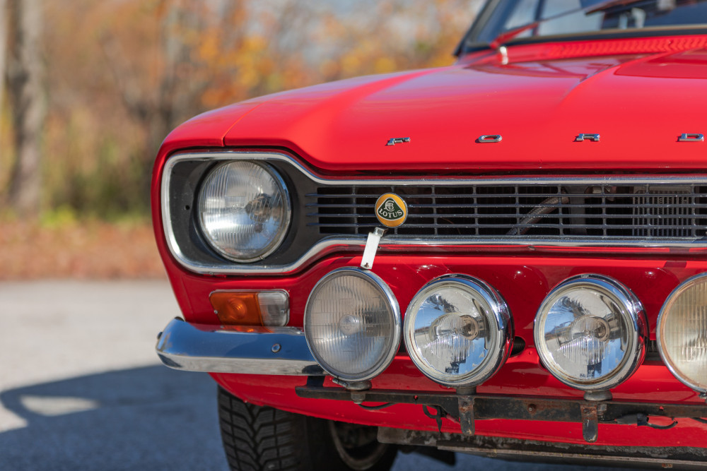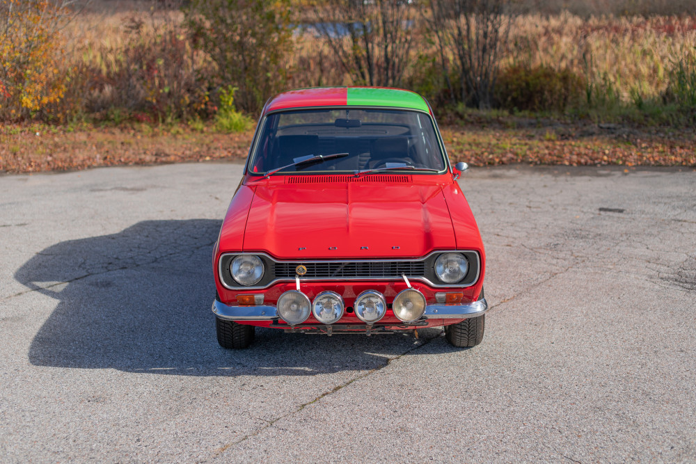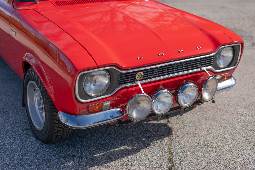 The original finish can be seen in the trunk and engine compartments of this 1971 Ford Escort MK1 from Stratas. The majority of Halewood built twin cam cars were finished in Ermine White, however Maize Yellow and Sunset Red were offered as special-order options at the end of production. This is thought to be one of three factory produced Sunset Red cars – a rare breed indeed which will make it all the more alluring for motor racing aficionados.