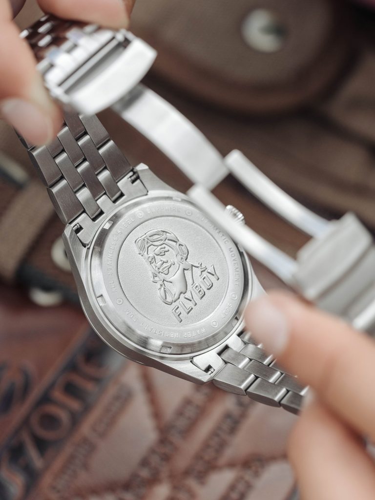 Powering this tool watch is an ever-dependable Japanese NH35 automatic movement that delivers accuracy and reliability in spades. A hydraulic pressed Flyboy icon on the case back is a tribute to the exploits, bravery and rakish flair of 20th century Flyboys who inspire us to this day. (£225)