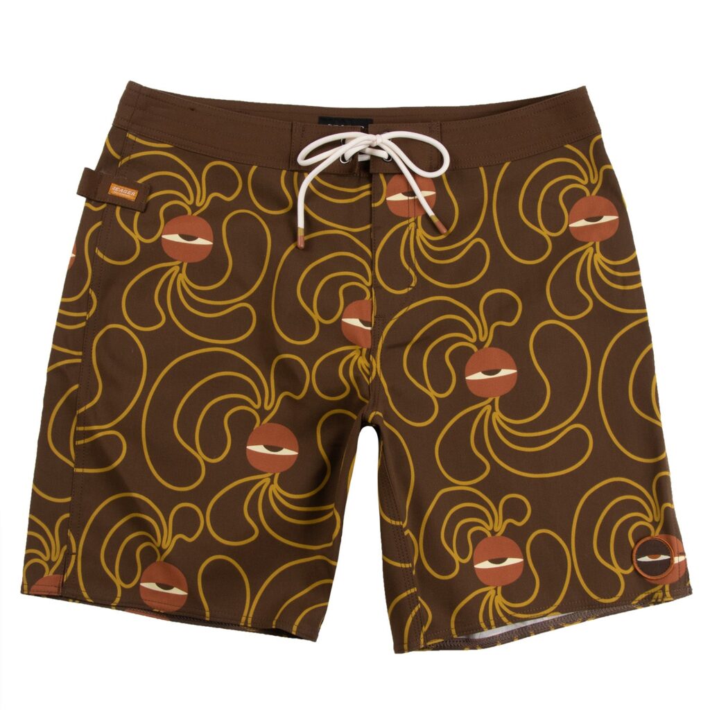 An 18.5” outseam trunk with custom print from Lauryn Alvarez. The fabric on this trunk is a leisurely blend of stretch nylon and cotton that will butter you up to your core. As always, loaded with signature Seager details such as a secure and comfortable tie waistband and rear slightly angled pockets for easy entry.