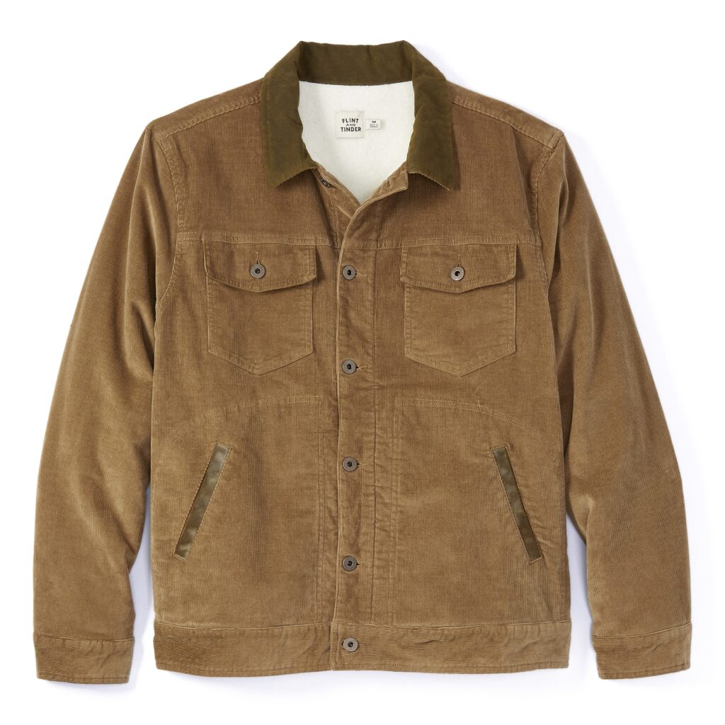 Flint and Tinder are known for making great trucker jackets, and this corduroy style is no exception. The Sherpa Lined Corduroy Trucker Jacket has a handsome texture thanks to its all-over corduroy construction, and the cozy Sherpa lining keeps you warm on cold days. Whether you’re wrangling cattle or walking the dog, this jacket is sure to keep you comfortable.