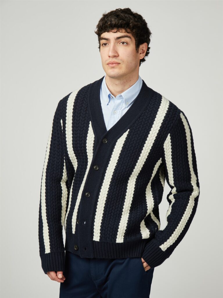 This knitted textured stripe cardigan features a Ben Sherman™ branded woven label at the side seam. A regular fit, made from a wool blend.