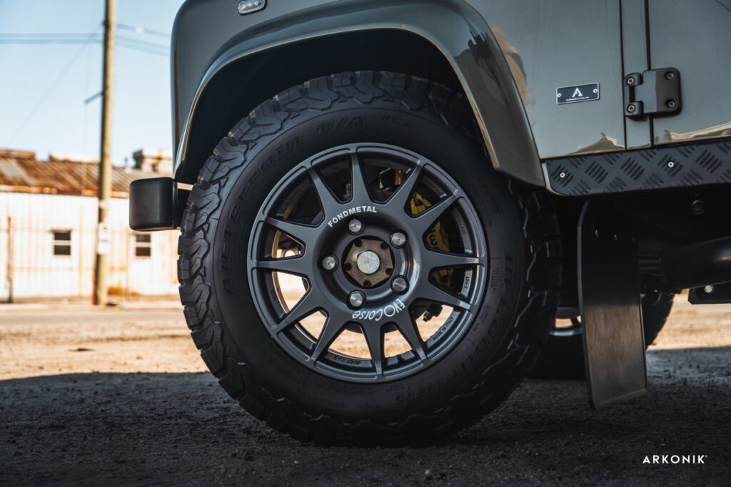 The exterior of the FU Dog Defender is equally impressive. The body is finished in a striking Willow Green with a Satin Black roof, creating a harmonious contrast. The metallic paint finish enhances the vehicle’s rugged yet sophisticated aesthetic. Body-coloured wheel arches and an OEM Puma bonnet complete the sleek look, while Evo Corse® DakarZero 18″ wheels and BFGoodrich® All Terrain T/A KO2 tyres ensure unparalleled performance on any terrain.