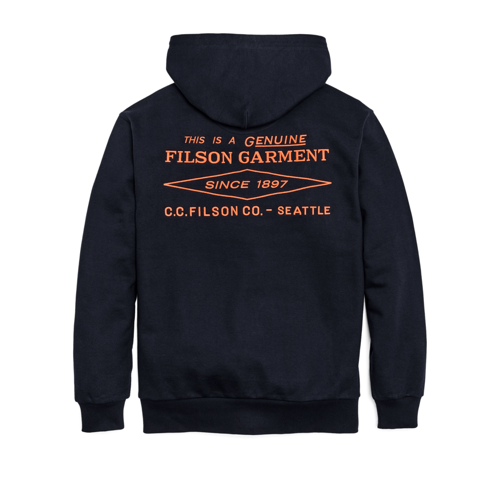 Filson’s Prospector Embroidered Hoodie is a warm and no-nonsense classic, boasting direct-embroidered Filson logo graphics on the front and back. With a lofted interior and smooth, pilling-resistant exterior face, the sturdy 13-oz. fleece holds its structure over years of wear.