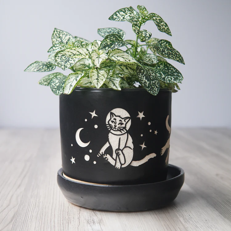Whether you’re an avid plant lover or simply looking to add a touch of greenery to your space with some artificial plants, our Space Cat Planter with Saucer is ideal for you! Featuring built-in drainage holes and accompanied by a convenient drip tray, our planters are perfectly suited for both indoor and outdoor gardening.