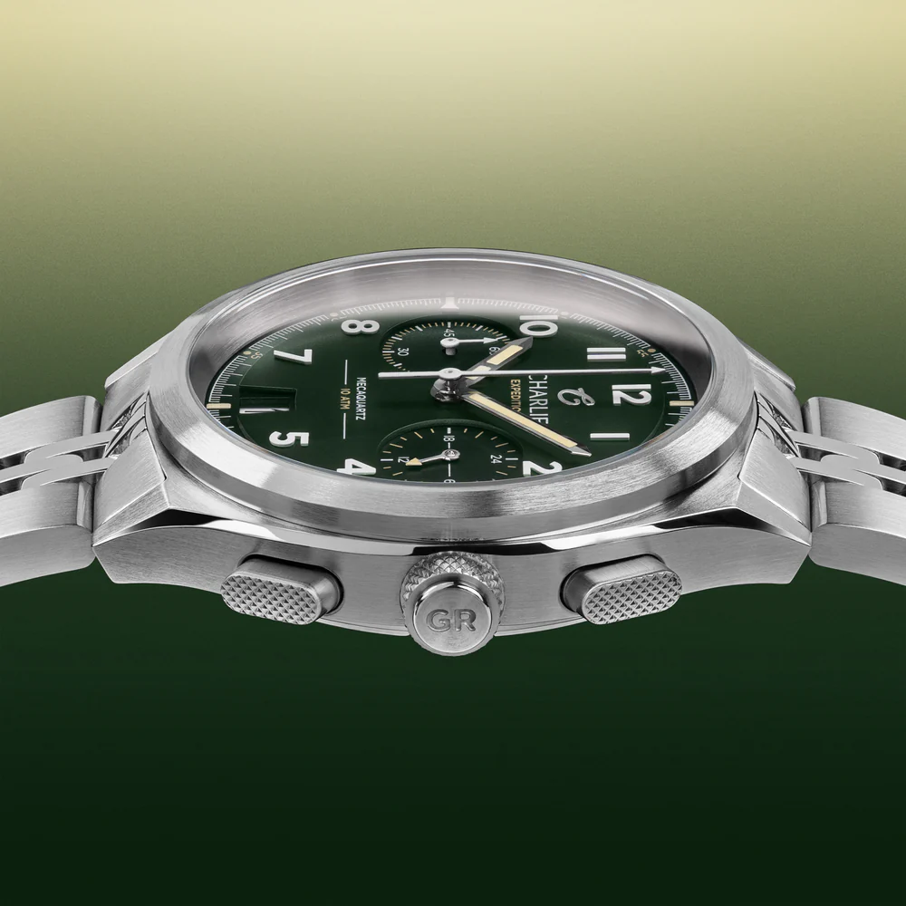 Here at The Coolector, we’re big fans of timepieces that strike the perfect balance between style, durability, and a touch of adventure—and the Charlie Paris GR MecaQuartz Chronograph Watch (£433) delivers exactly that. Assembled in the heart of Paris, this watch is a contemporary interpretation of the classic field watch, offering a design that’s as reliable as it is rugged. With its 39mm diameter, polished and brushed 316L steel case, and lightly sandblasted green dial, this watch effortlessly combines vintage charm with modern functionality.