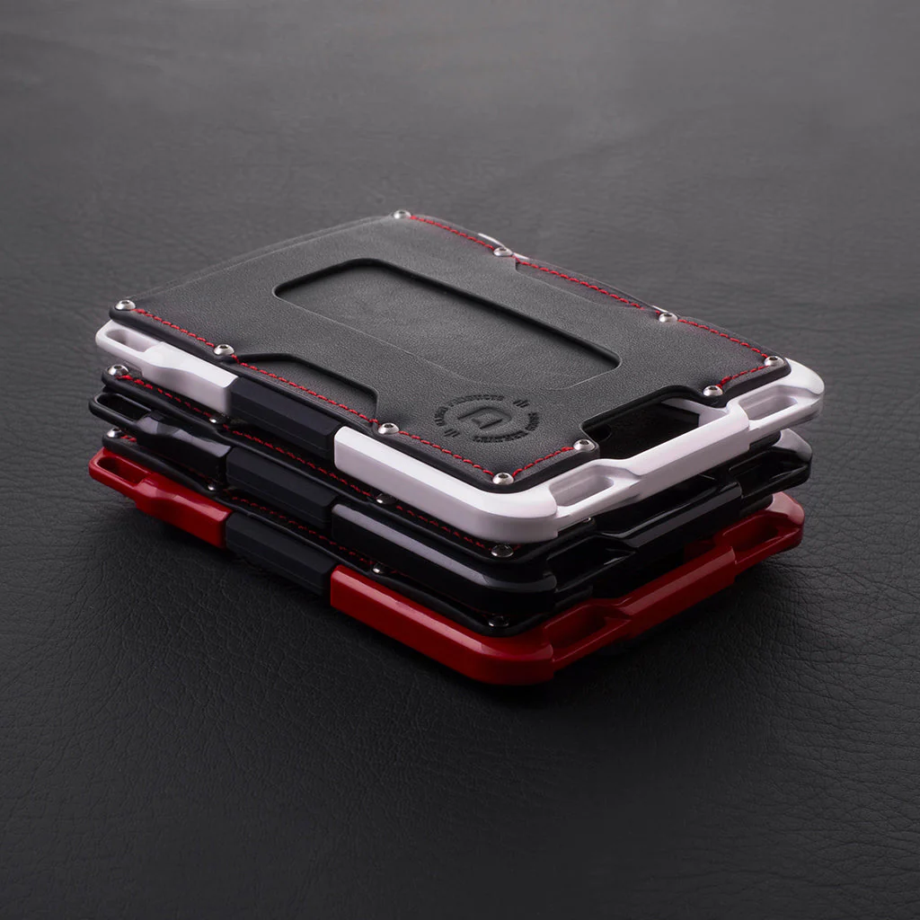 The slim vertical wallet is handcrafted and made in the USA. It is designed to hold up to 10 cards and has multiple anchor points for tethering. The wallet is made from 6061 aerospace grade CNC’d aluminium and has a prismatic powder-coated wallet chassis. It also has top-grain leather with accented stitching and a carbon fibre back plate. The wallet is RFID-blocking, which keeps your information secure.