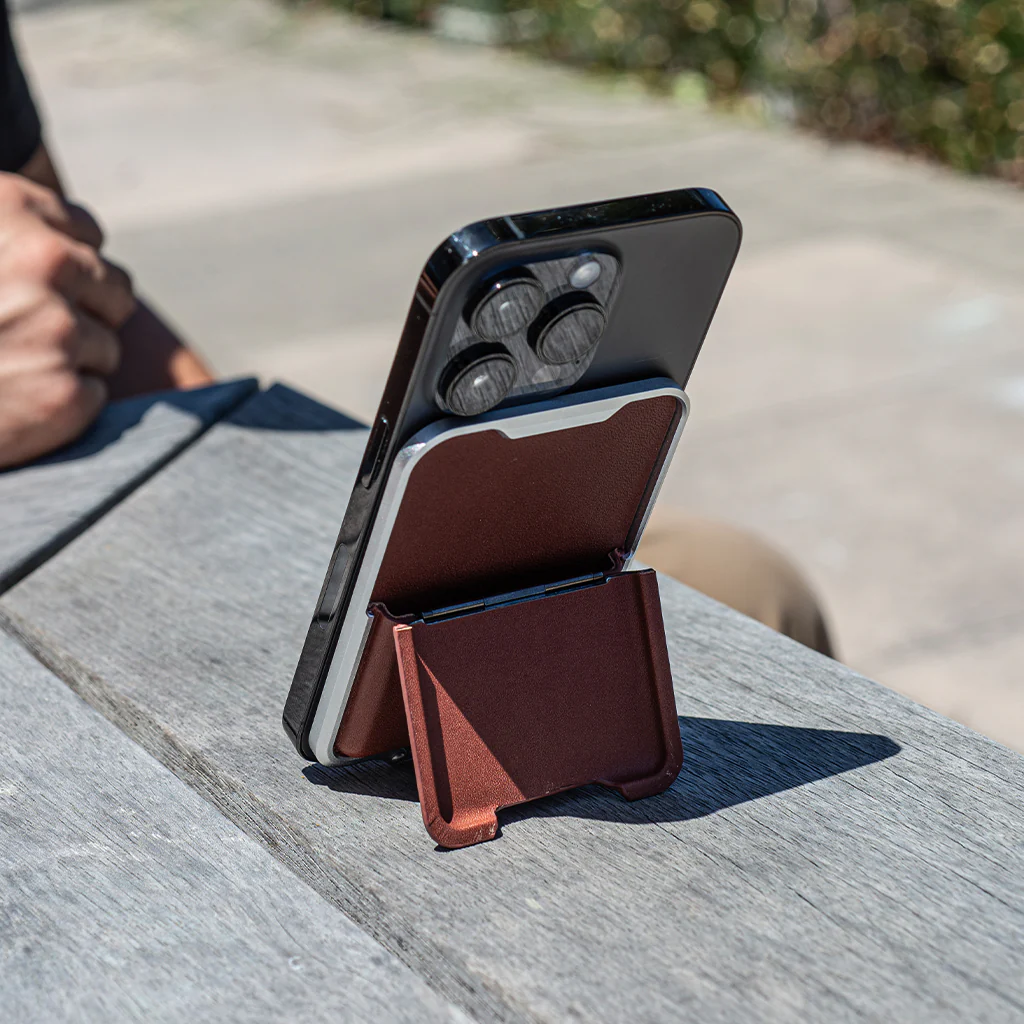 One of the standout features of the MagSafe Wallet is its inner snap-back steel hinge. This innovative hinge mechanism allows the wallet to open at several lock points, deploying your cards and content with ease. Additionally, when opened, the hinge doubles as a sturdy phone stand, supporting both portrait and landscape orientations. This makes it perfect for watching videos, participating in video calls, or even following a recipe in the kitchen.