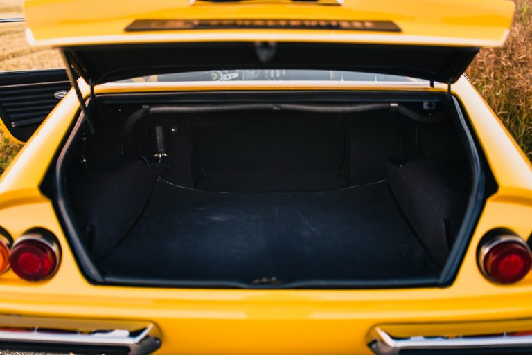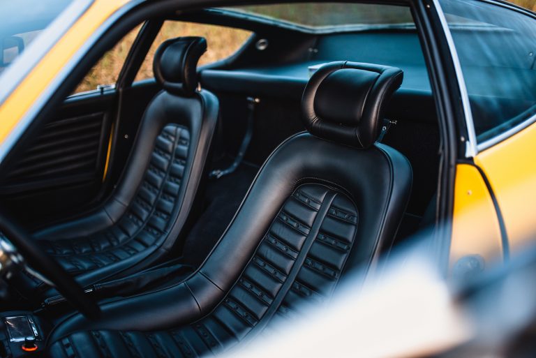 Its electric Giallo Fly (20-Y-191) body color and Nero (VM 8500) leather interior dropped the jaws of many, and the car only continued to evolve in its power and beauty. For a time, it was professionally converted to a Spider by the inimitable Carrozzeria Bachelli & Villa in Modena, Italy, where it sported a red coat with a red and black interior color scheme. It passed through the hands of many caring owners, such as Giancarlo Gagliardi; Gérard Boireaux in Belgium in the ’80s, where it was displayed at Autoretro in 1989; and finally, over to Eric Hamdi, owner of MMC Watch boutique in France, who conserved the car for 15 years.