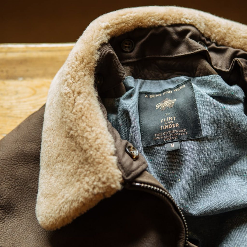 The Flint & Tinder x Golden Bear Leather Bomber Jacket has a price tag of $998 which speaks to the quality of both the materials used and the calibre of the craftsmanship throughout. This first class jacket is a exclusive, limited edition collaboration between two excellent American brands who have joined forces to build an heirloom nubuck leather jacket in a classic bomber silhouette.