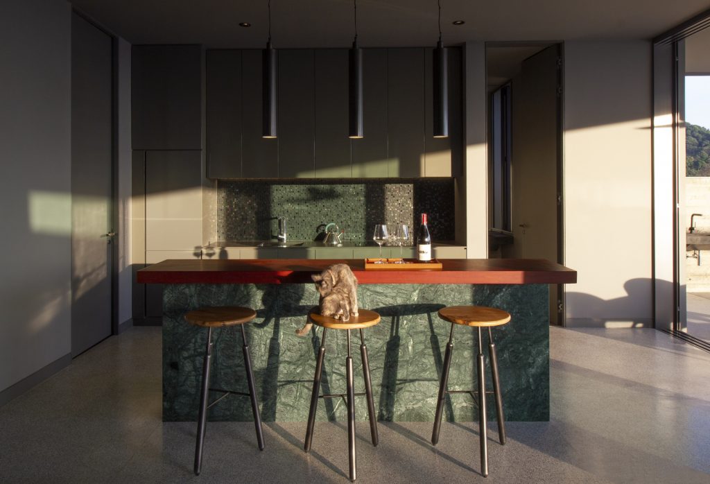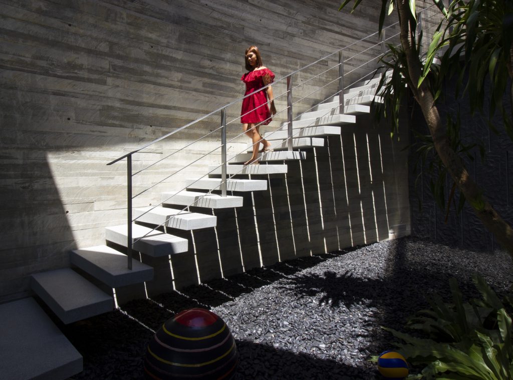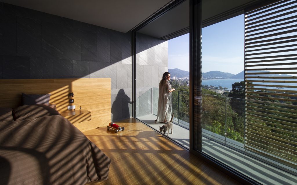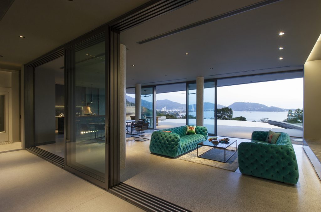 The site of the Kalim Beach House from Design Qua can be found on a hill that boasts a 180-degree view of awe-inspiring Kalim Bay. Beautiful as it is, this was a challenging narrow and vertical site for the design team that had to fit a lot of “house” on it but, as you can see, they’ve accomplished it with aplomb. The house is approached from the top level into a vertical courtyard with a grand staircase that leads the residents into the living and pool level situated below.