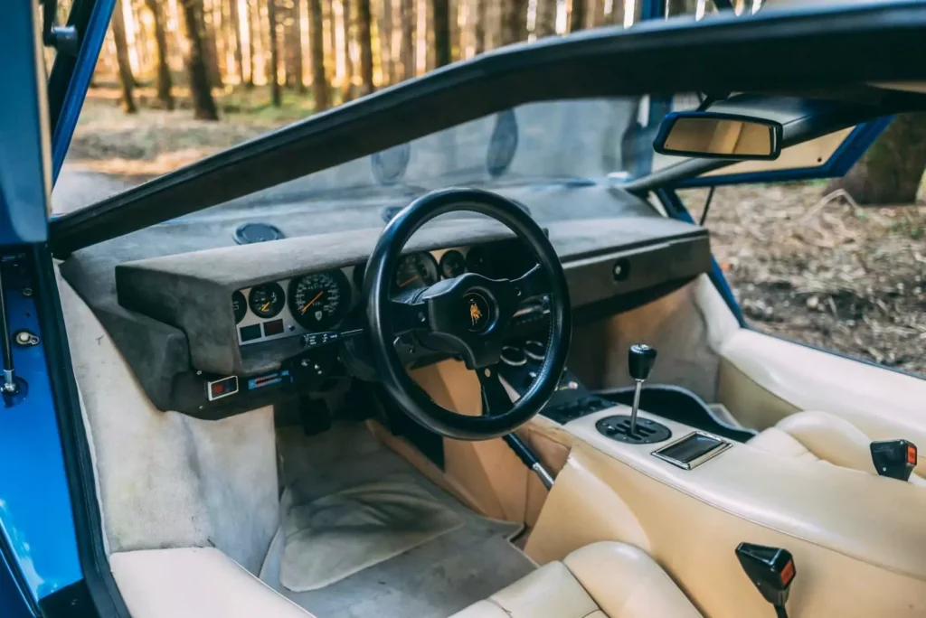 On the inside of this breathtaking Lamborghini, you’ll find a wonderfully patinated cream and brown interior that remains untouched from the day it was delivered. In total, the Countach has only been driven about 46,400 km from new and it is presented in remarkably good condition for whoever is lucky enough to get their mitts on this majestic steed.