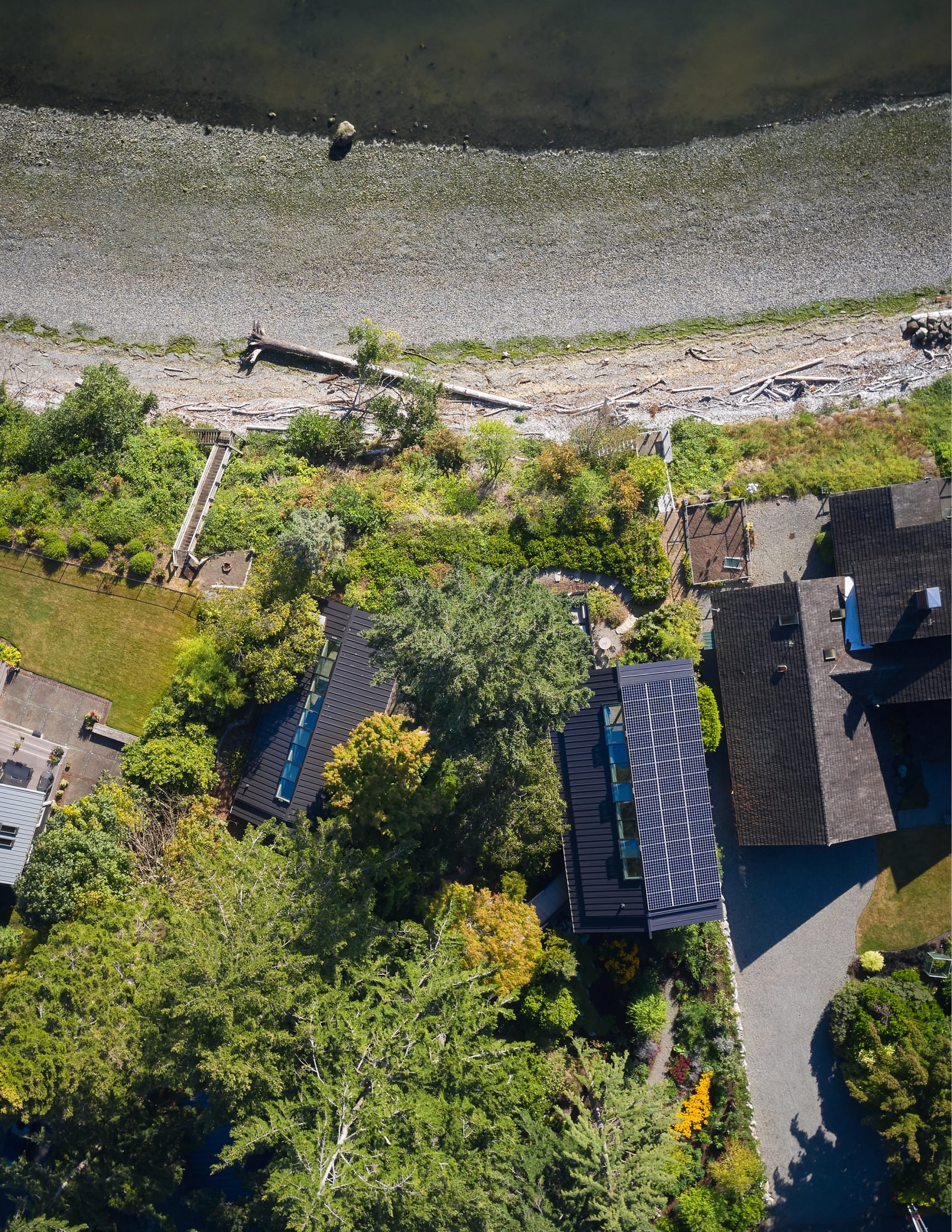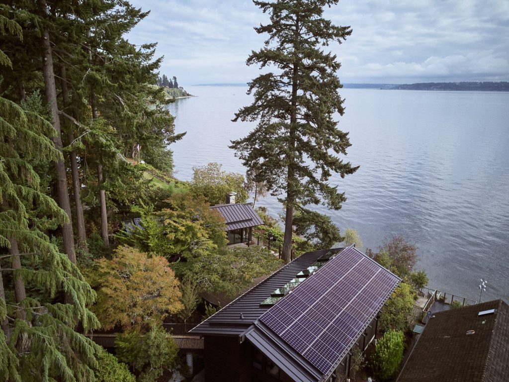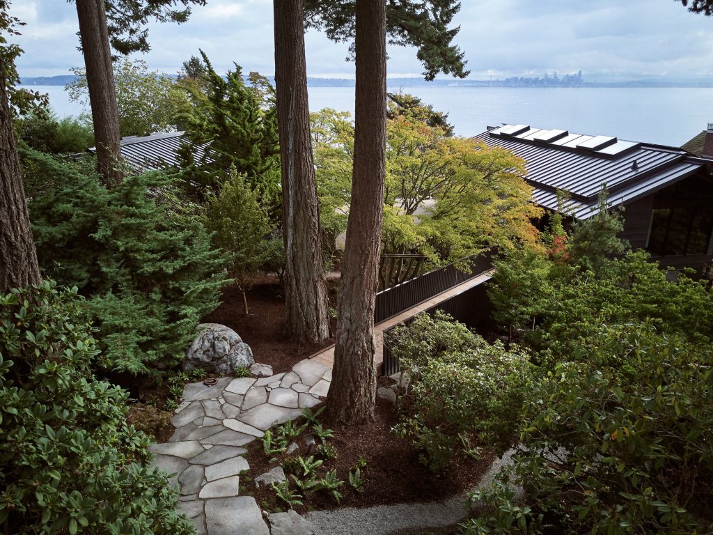 Some of the other modifications to the property grounds included the addition of a new entry bridge, which passes through a stunning row of huge, evergreen trees. The landscape also boasts ornamental plantings such as Japanese maples, rhododendron and azaleas and gives the whole plot and relaxing and welcoming feel which fits in perfectly with its mid-century design aesthetic. A 16 kilowatt-hour photovoltaic array delivers power to the residence. A backup battery system provides energy in the case of a power failure.