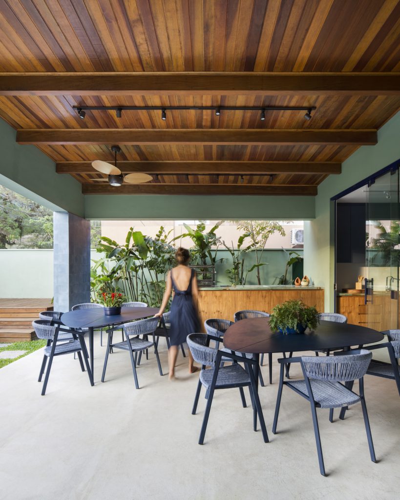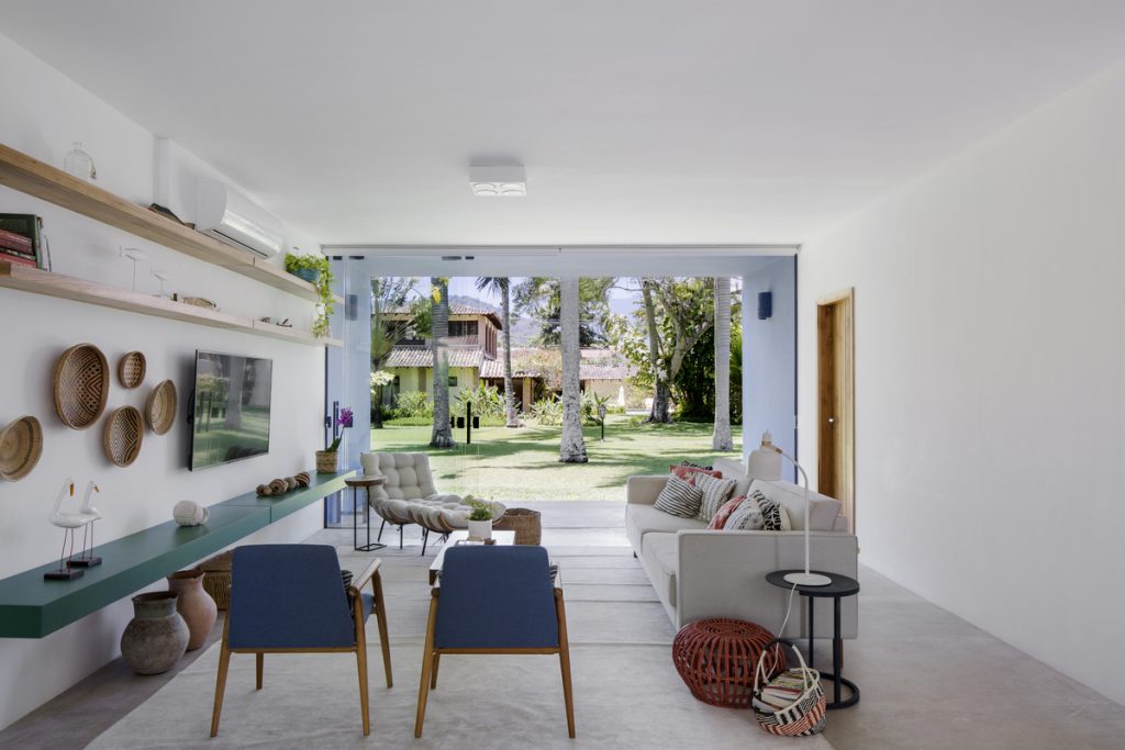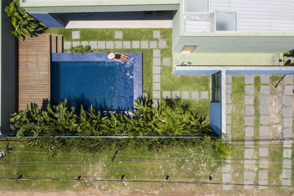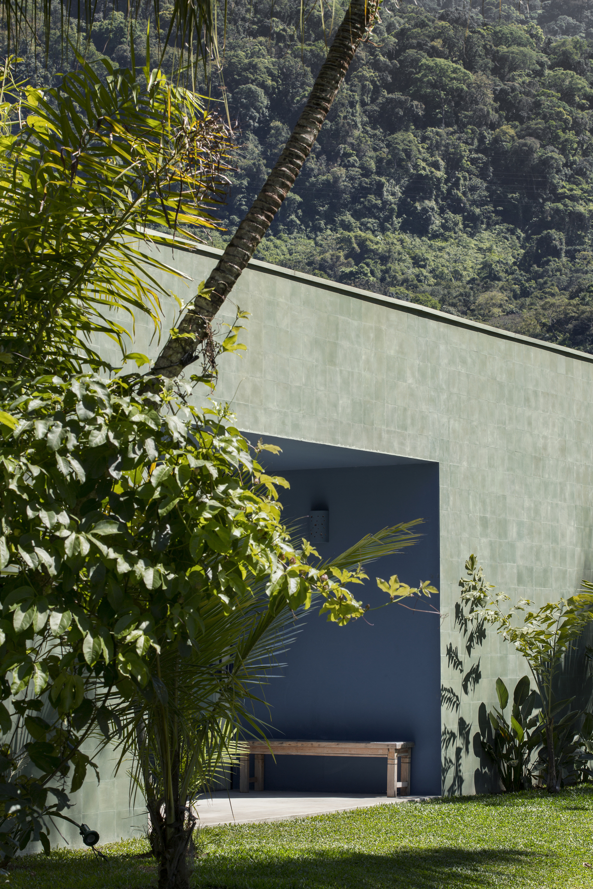 The architects behind Patropi House wanted the property to respect its surrounding landscape which was so rich in nature. Despite its contemporary and considerable size, the choice of materials and colours for this rental home, blue and green, allowed for the house to be understated within its surroundings. Blue and green can be found throughout the house in various materials and shapes, which does a fantastic job of fitting in with the Brazilian and tropical decorative style throughout.