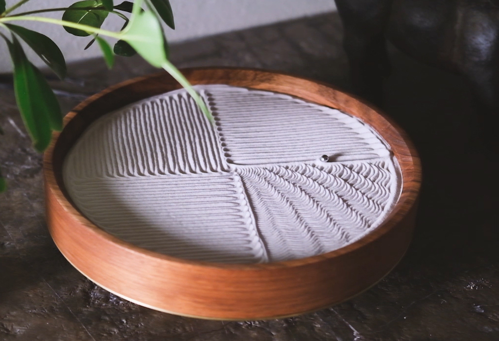 Put simply, the SANDSARA Kinetic Sculpture is just a captivating piece of art and feels like a new kind of life form creating unique and surprising patterns, which are always evolving. It comes with a beautiful frame that outlines the sand patterns and gives a refined touch to proceedings without stealing your attention. The 45° chamfer in the edges is an understated detail that merges the wooden frame with the sand bed into one.