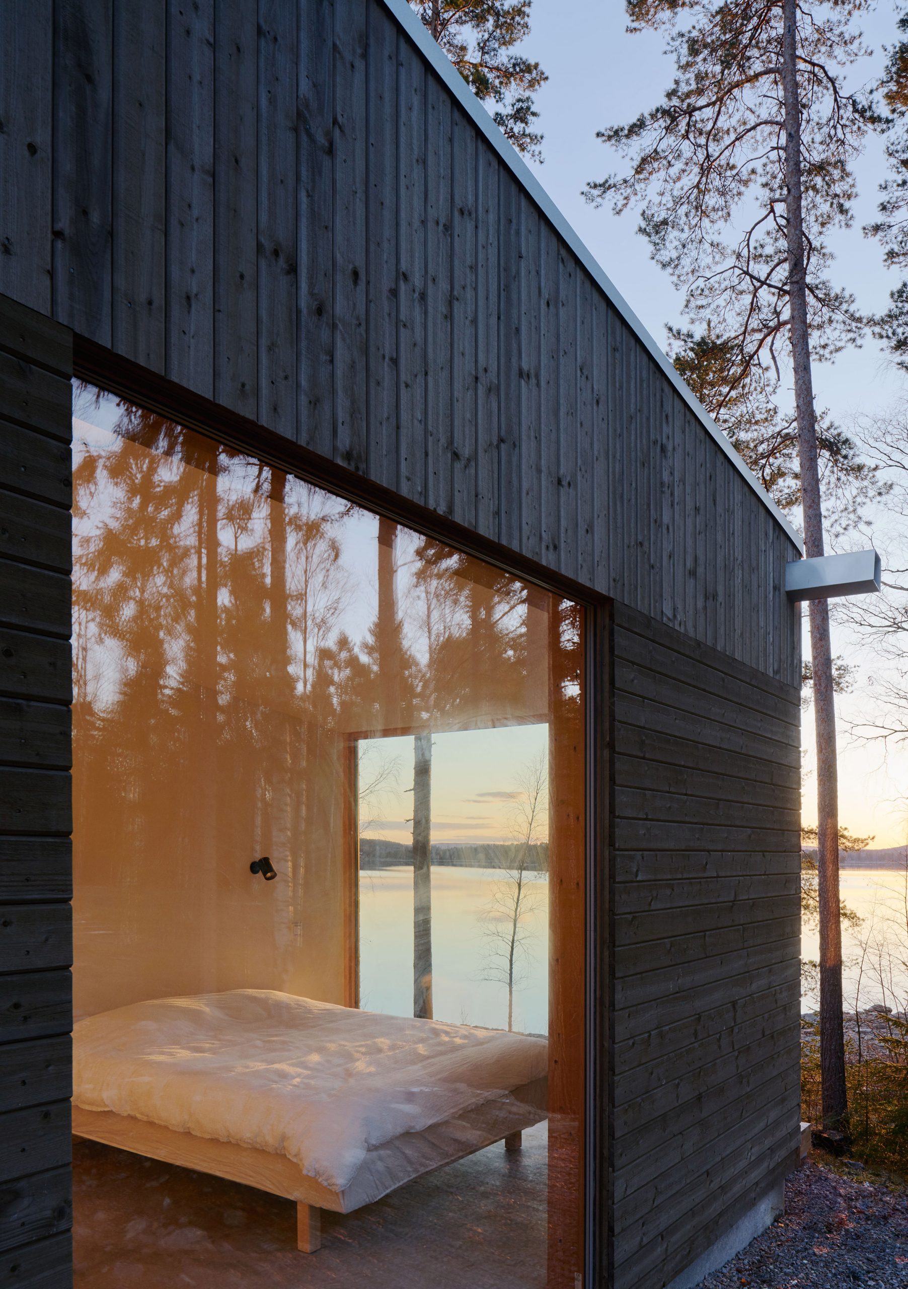 Drawing inspiration from the forest that surrounds it, the wooden frame of this effortlessly classy property has been clad entirely in planks of treated pine. These run horizontally on the lower section of the Stockholm Lake House and then vertically towards the roof to deliver the most eye-catching of visual impacts upon arrival.