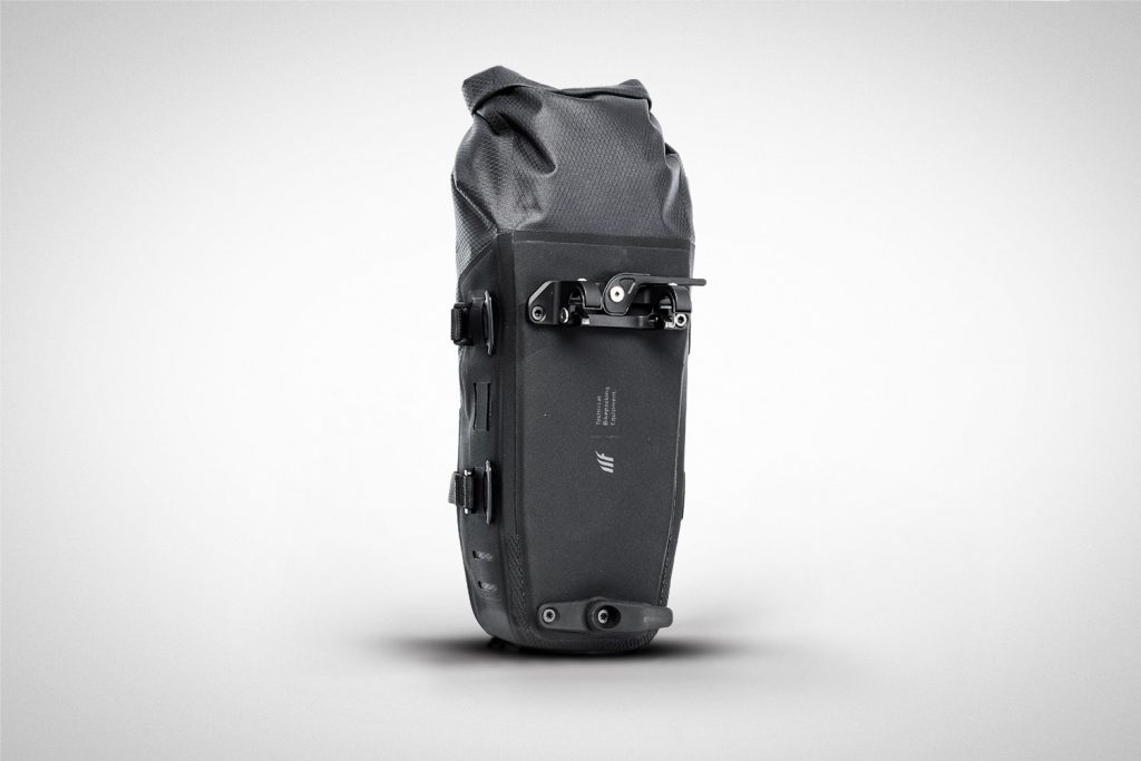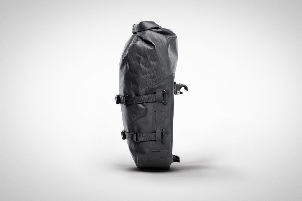 The hardware and soft goods on these panniers are flawlessly integrated and each has been precision engineered with CNC machined 6061-T6 aluminium parts that combine with high end Hypalon and ripstop Nylon in one seamless union and provide an unparalleled performance wherever your adventures take you. It is 100% waterproof and boasts high frequency welded seams and a roll-top design which makes these Tailfin Mini Panniers capable of offering total protection from the elements. Now, on your bike.