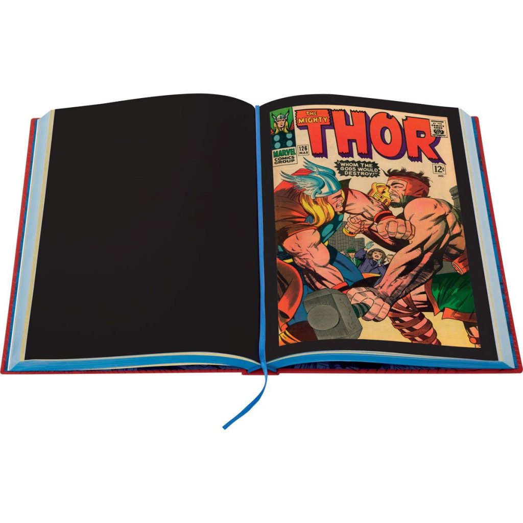 This mesmerising collector’s edition has been curated by Stan Lee’s editorial successor, Roy Thomas. (Two of Thomas’s earliest co-creations, the Vision and Ultron, both appear here in a story from The Avengers #57). The stories have been selected and reproduced with the utmost care. So as to obtain actual copies of the source comics, The Folio Society worked closely with both Marvel archivists and pillars of the comic collector community in an effort to bring you as close to the original source material as possible.
