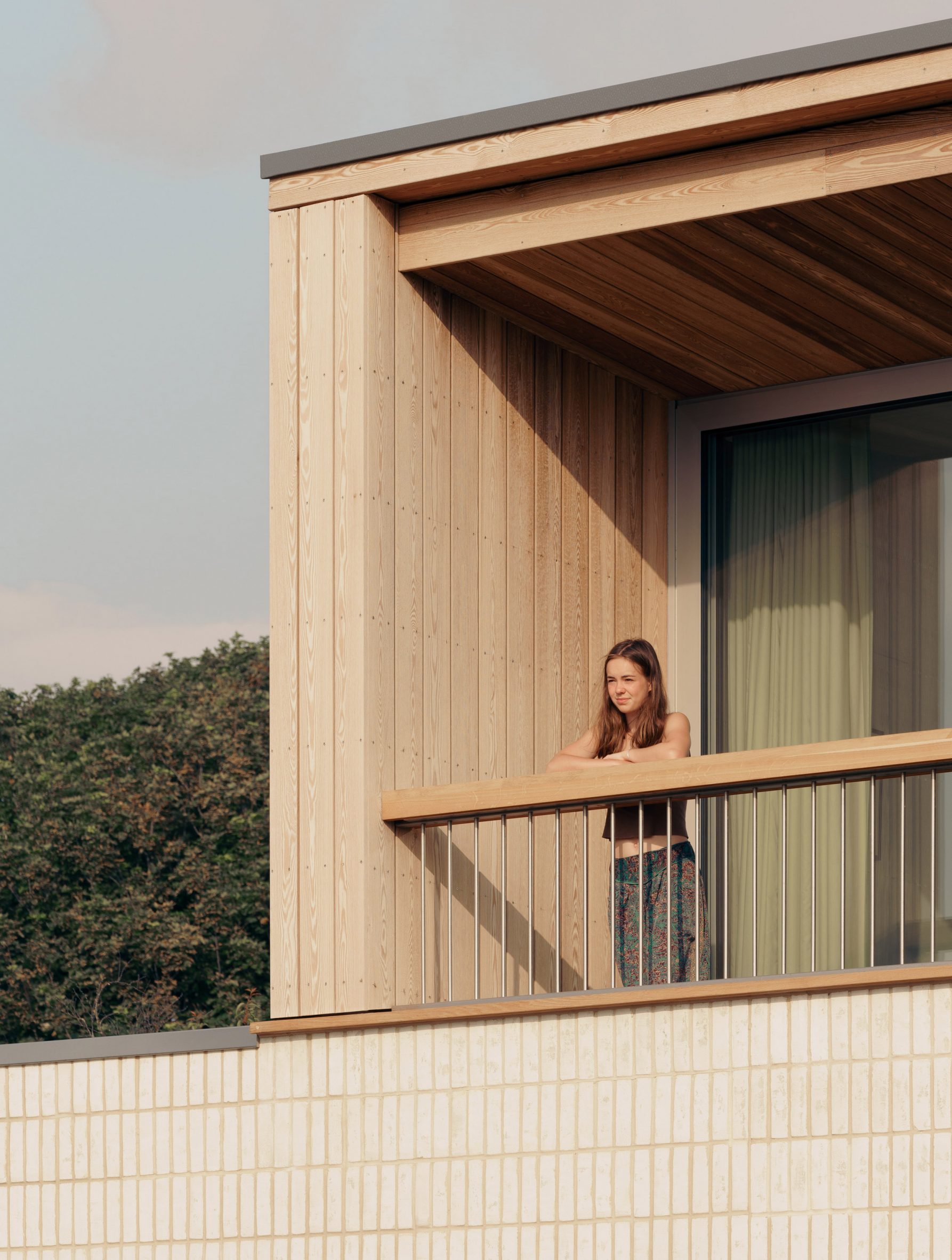 Thorpeness Beach House has two clear modes – namely, open and closed – which was the driving force behind the overall concept for the deliberately stark contrast between the solid masonry facades and the huge expanse of glass positioned between them. Robust materials were picked for most of the finishes, both inside and out, to make sure the building can stand up to the regular exposure to coastal winds, sand and sea. Exterior walls are made from pale-toned bricks, arranged in two different bonds to give the building a unique, welcoming aesthetic.