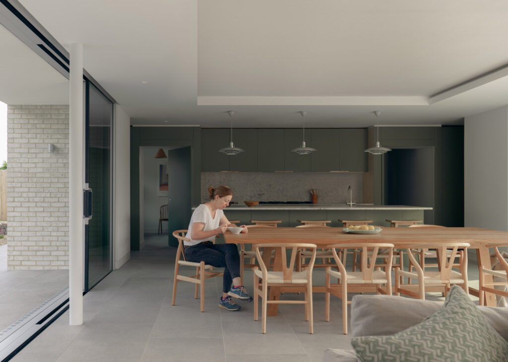 Thorpeness Beach House from IF_DO is a two-storey holiday home that has been purpose built with multi-generational living in mind. The owners, couple Ben and Louisa Brown, had a vision of the house as a place where they and their extended family could come for weekends and holidays to enjoy spending time with one another in a truly relaxing setting in one of the UK’s most picturesque seaside towns. The architects provided them with a six-bedroom property with two separate bedroom zones. A ground floor suite gives space for grandparents and guests, while rooms upstairs are set aside for the younger members of the family.