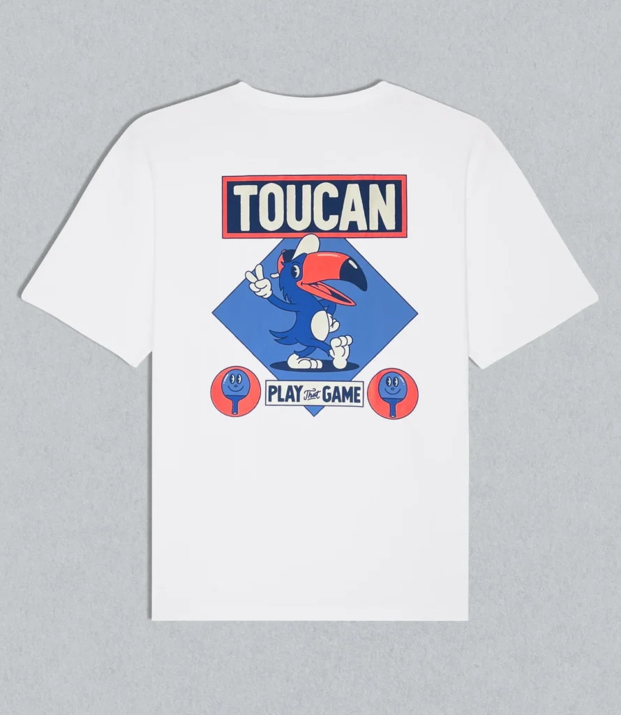Toucan are thrilled to launch this veeery limited edition tee in collaboration with Yeye Weller – with his Toucan table-tennis inspired designs rendered in glorious detail, and special neon coral inks.