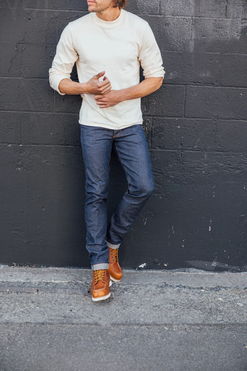 The brand offers core fits to suit discerning tastes: the Slim Fit Raw Selvedge Jeans ($525) provide a modern, sophisticated silhouette, while the Straight Fit Raw Selvedge Jeans ($525) deliver a timeless, classic look. Both embody the new standard for truly American-made raw selvedge denim, backed by a commitment to quality reflected in their premium price point.