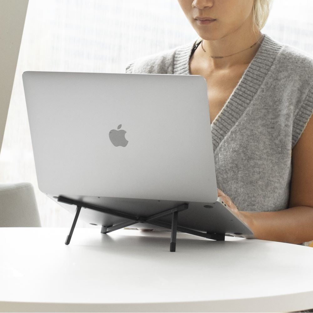 Introducing the sleek and versatile laptop and tablet stand designed to elevate your computing experience. Crafted from durable aluminium and featuring non-slip silicone pads, this stand securely holds your device at a comfortable 14° viewing angle, promoting optimal posture. Its cross-structure design accommodates virtually any laptop or tablet, making it a versatile addition to your workspace.