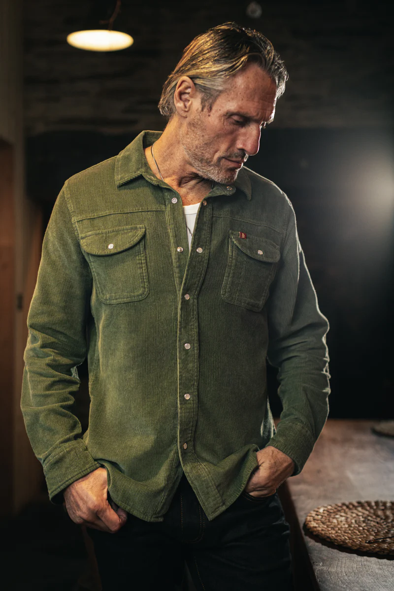 The Sunday Shirt Cord offers a classic workwear feel with upgraded features, including laid-on chest pockets, a handy pencil pocket, and durable metal snap closures.
