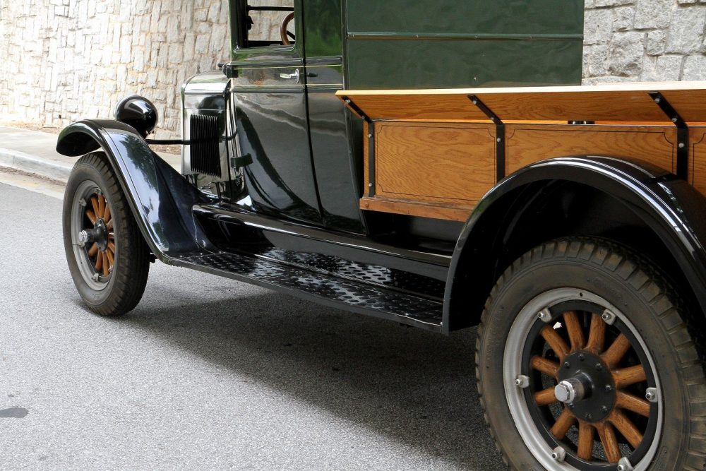 Under the hood is Chevrolet’s 171 cubic inch overhead valve-in-head four cylinder engine (Ford was still using a a flathead / sidevalve configuration). The late-1928 series LP trucks came standard with a four-speed manual transmission (which also has a power-take-off coming out of the side to propel a variety of implements). The LP Utility Express was also the first Chevrolet truck to have brakes standard on all four wheels.