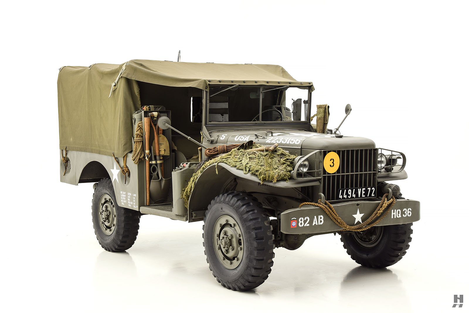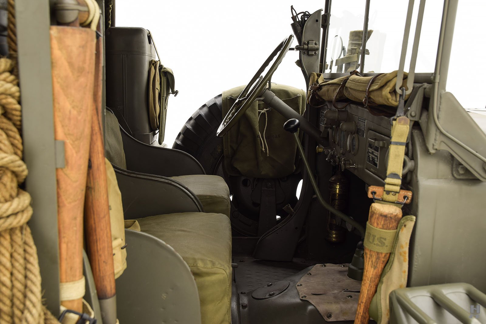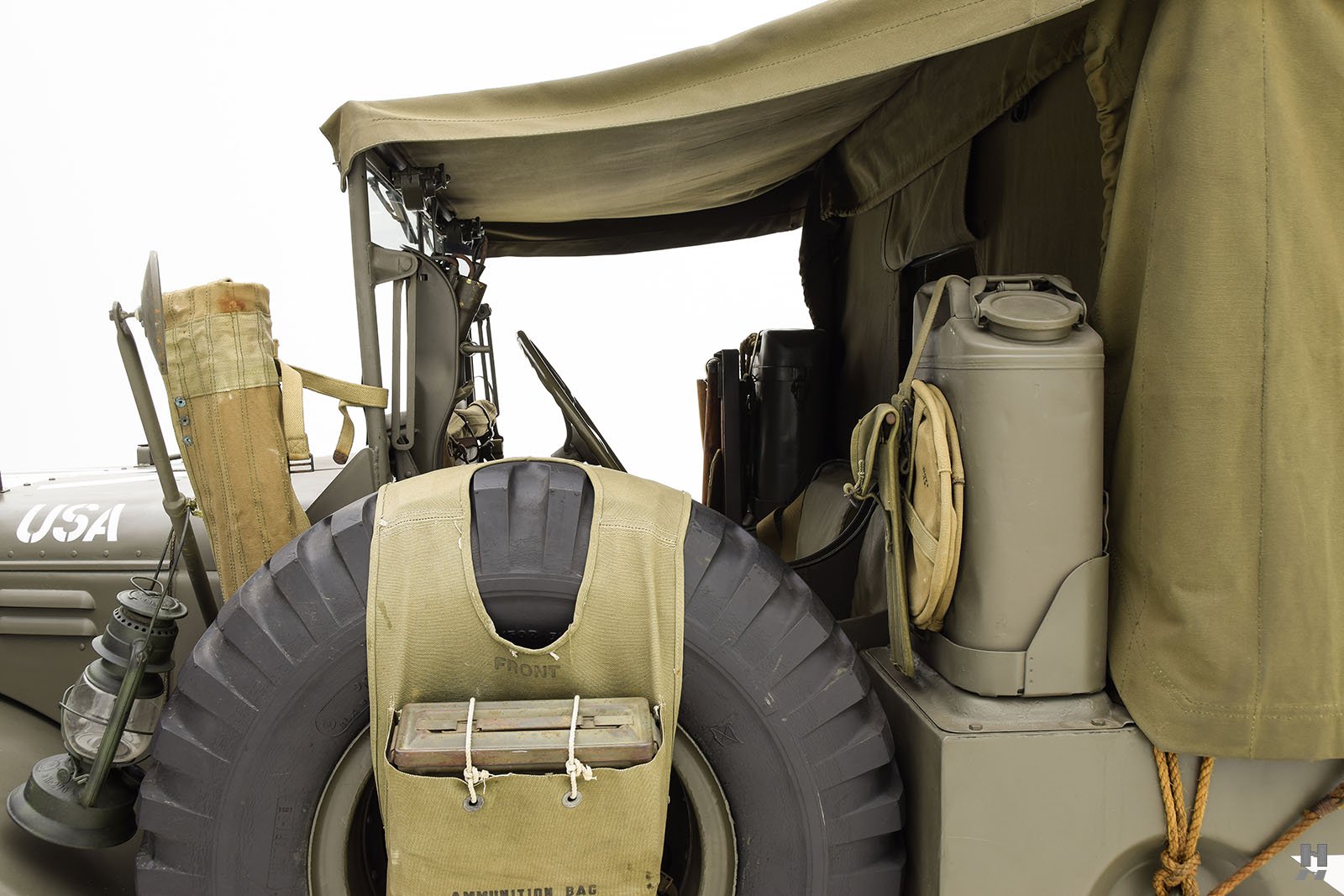 The 1943 WC51 is a stunning example, wonderfully well presented with period equipment that boasts a genuine 1943 Harley-Davidson WL (S/N 42-2136) military-specification motorcycle on a replica trailer. The WC51 is a first series ¾-ton version with the standard Weapons Carrier body on a 98-inch chassis. It has been painstakingly restored and has an exceptional attention to detail with excellent accessories such as full embarkation equipment (including shovel, axe, camouflage netting, jerry cans and armament cases) and it’s all presented in the colors of the 82nd Airborne division.