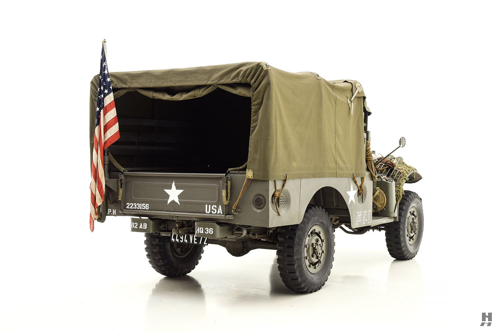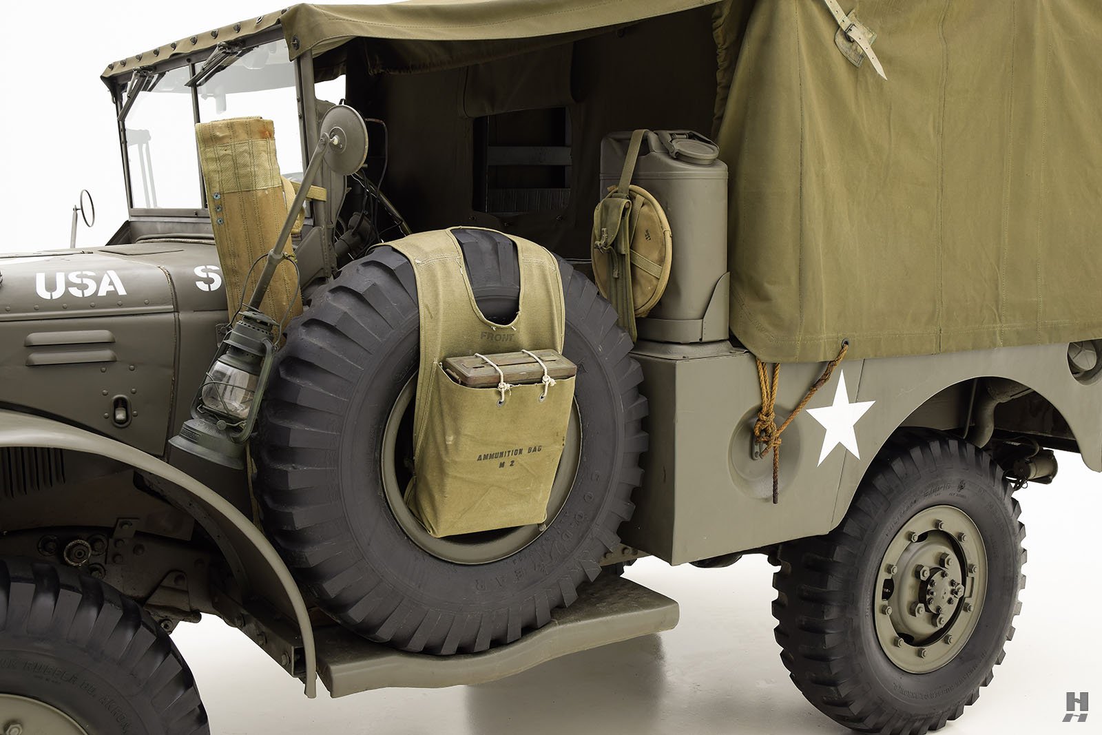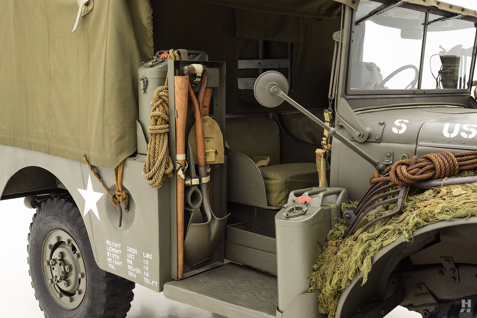 The 1943 WC51 is a stunning example, wonderfully well presented with period equipment that boasts a genuine 1943 Harley-Davidson WL (S/N 42-2136) military-specification motorcycle on a replica trailer. The WC51 is a first series ¾-ton version with the standard Weapons Carrier body on a 98-inch chassis. It has been painstakingly restored and has an exceptional attention to detail with excellent accessories such as full embarkation equipment (including shovel, axe, camouflage netting, jerry cans and armament cases) and it’s all presented in the colors of the 82nd Airborne division.