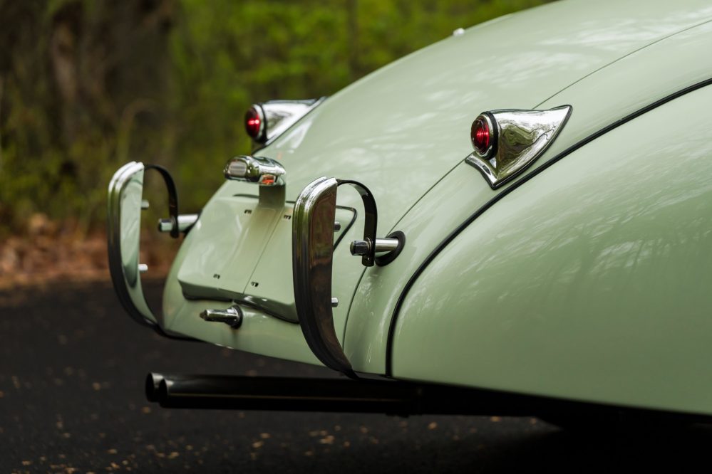 This glorious looking machine from Jaguar was debuted in 1953 and boasts a lined convertible top, roll-up windows, and taller doors than OTS roadster XK120 models. The interior was retrimmed in dark green leather and light green carpeting during the refurbishment and the 3.4-liter inline-six was rebuilt by MG T’s in West Milford, New Jersey during the refurbishment and has a replacement cylinder head that was reconditioned by Terry’s Jaguar Parts in Kalamazoo, Michigan. Quantum Mechanics of Oxford, Connecticut reportedly rebuilt the four-speed manual gearbox in more recent years.