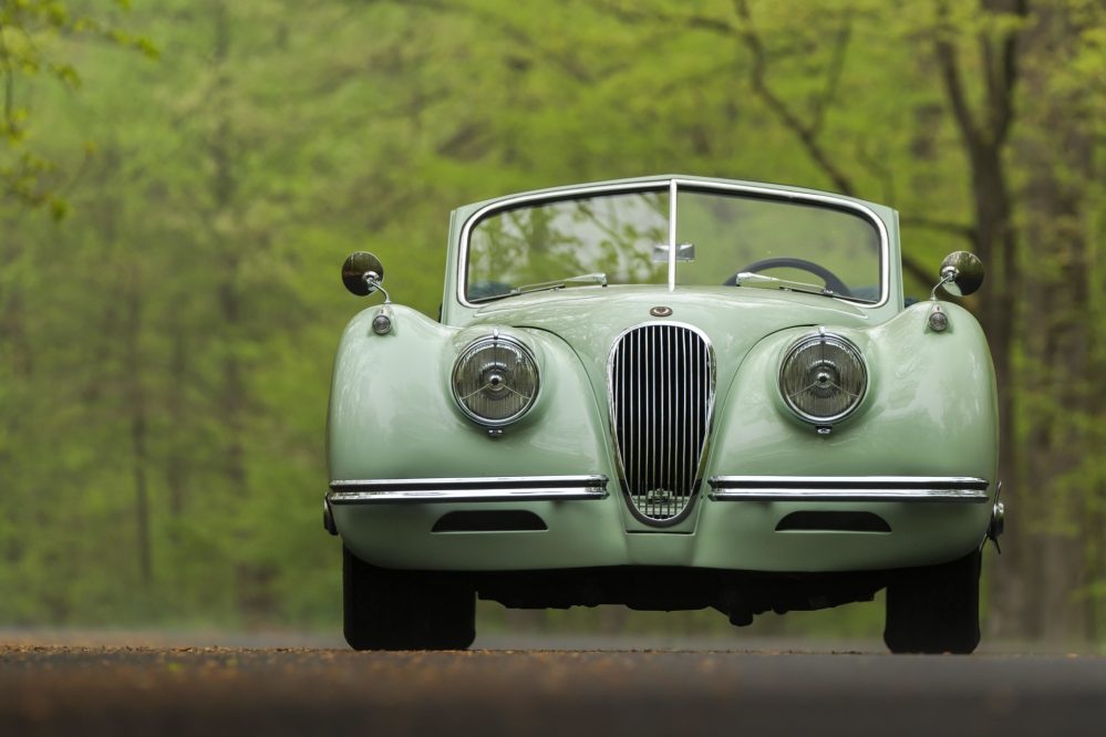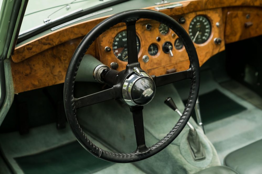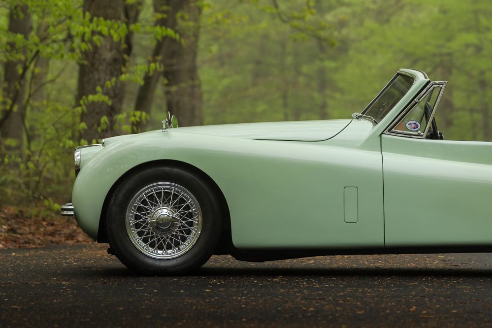 This stunning 1953 Jaguar XK120 is a late-production Drop Head Coupe which boasts the striking Pastel Green over a Suede Green interior that will turn heads aplenty. It is a left-hand-drive US-market car, which was imported by Max Hoffman Motorcars and reportedly purchased new by William Prescott, a New York physician. Dr. Prescott and his family added approximately 53k miles over the course of seven years before parking the car at their summer home in the Thousand Islands, where it reportedly remained stored for more than 40 years. A vintage car collector bought the car from Dr. Prescott’s estate in 2001 and commissioned a refurbishment at George Medynski’s M&G Vintage Auto Restorations in Tuxedo, New York.