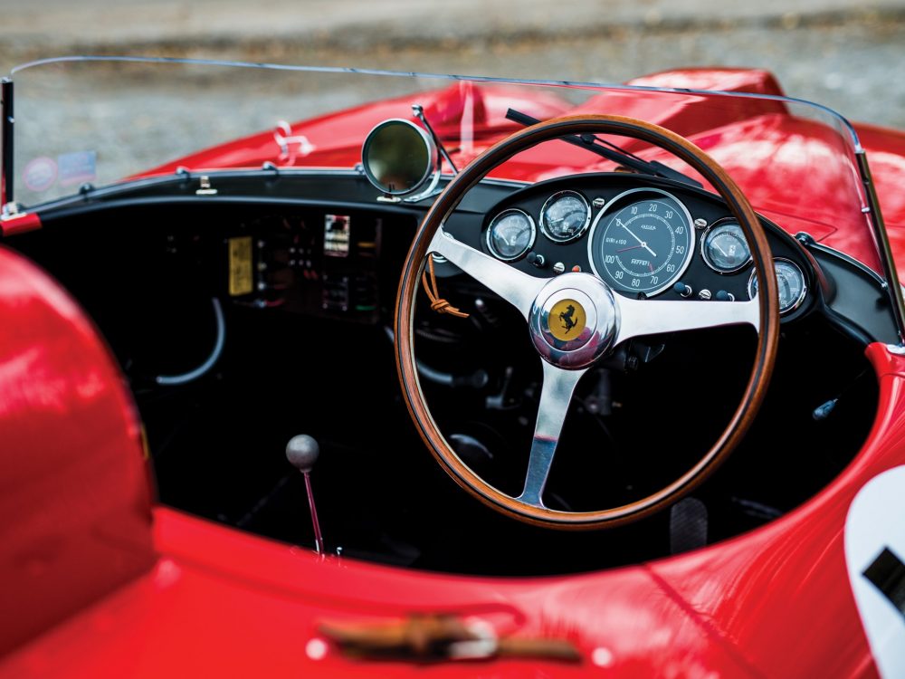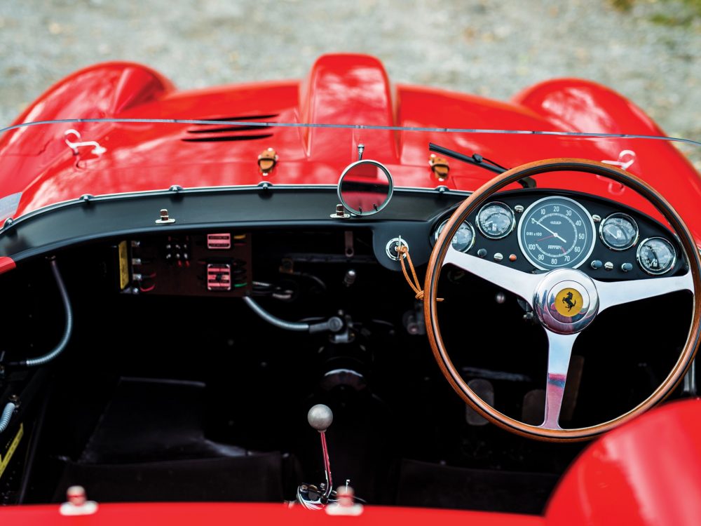 It debuted at the 1956 Mille Miglia in 860 Monza specifications, chassis no. 0628 and came 2nd overall while wearing number #551, piloted by Peter Collins and Louis Klemantaski. In that same year, Olivier Gendebien and Hans Hermann took the car to 4th at the Targa Florio in Sicily, while Umberto Maglioli finished in 2nd place with the car in the XVIII Aosta-Gran San Bernardo Hillclimb, also in Italy – so as you can see, this RM Sotheby’s lot certainly has an automotive backstory beyond compare.