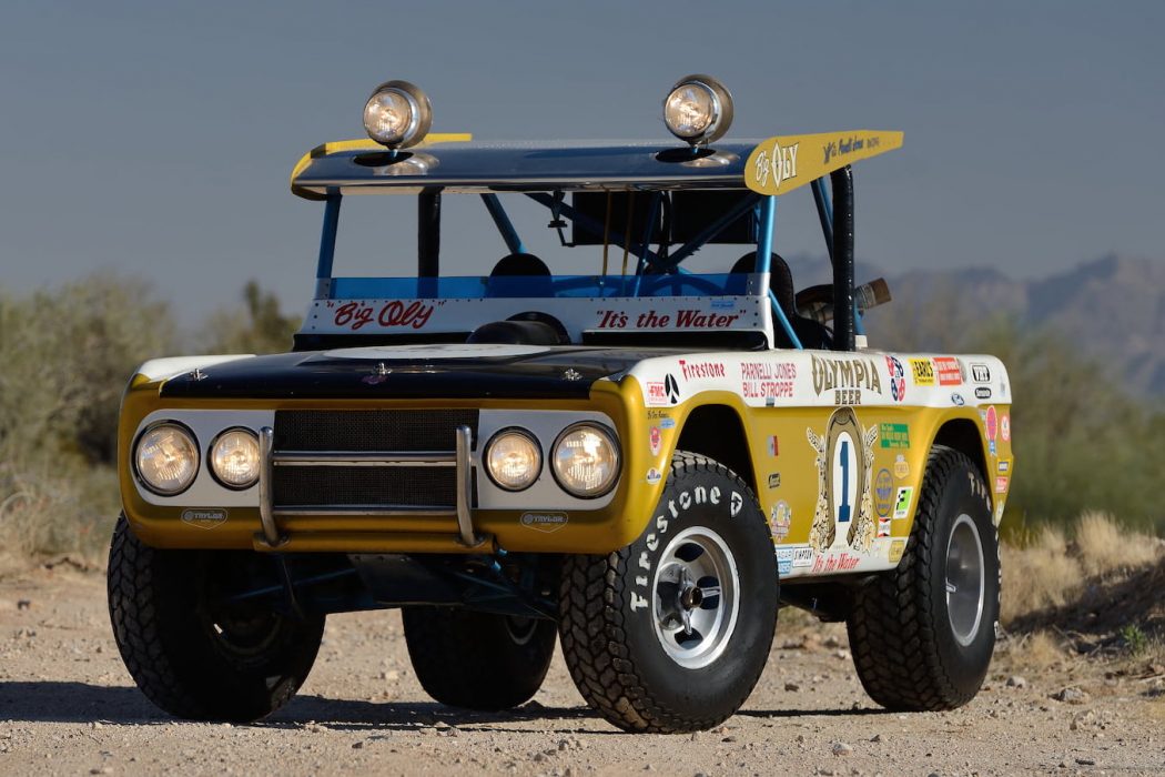 The 1969 Ford Bronco ‘BIG OLY from Mecum Auctions is based on a 1969 Bronco and has sponsorship in place from Olympia Brewing Company. Big Oly is among the most memorable in the history of motorsports and it was driven by the iconic Parnelli Jones, a man who, without doubt, enjoyed pet names for his racing vehicles. Jones was made famous driving a car named “Ol’ Calhoun,” his faithful Watson-Offenhauser racer in which he broke the elusive 150 MPH barrier and won the Indianapolis 500.