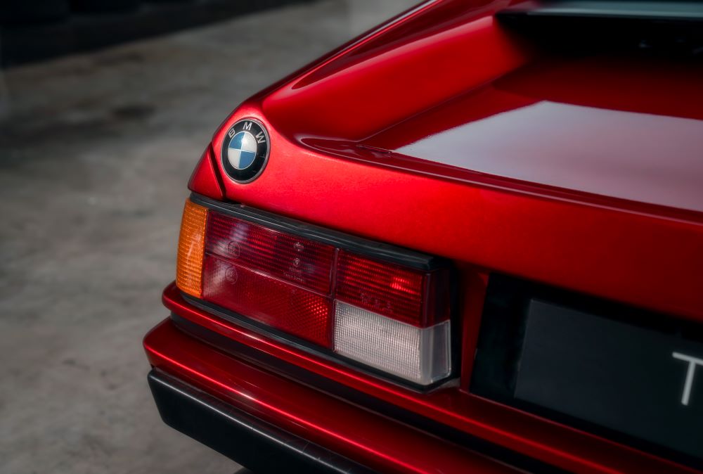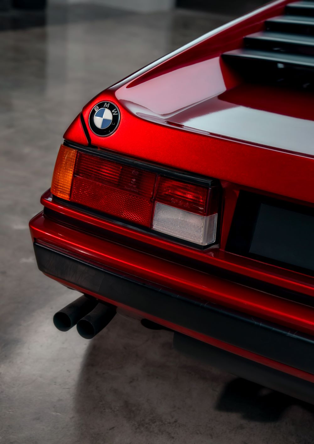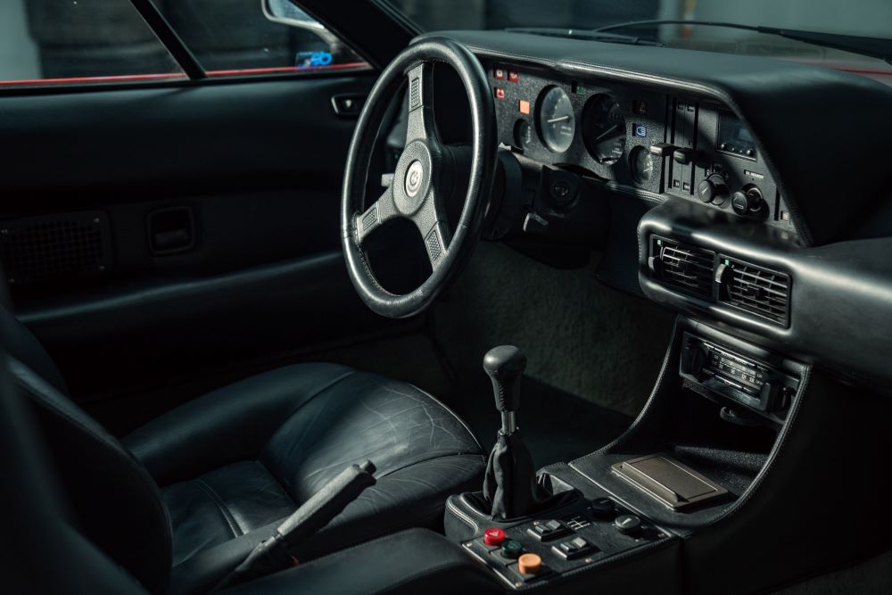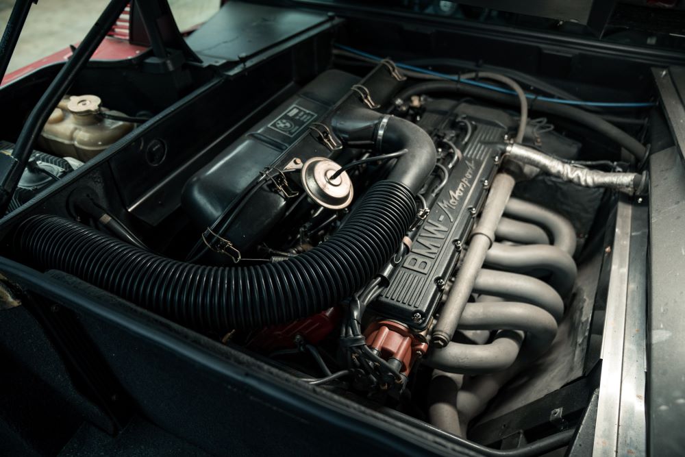 This BMW M1 was completed by the factory on October 9, 1980, and delivered to BMW France in Saint-Quentin-en-Yvelines, near Versailles, four days later. It was not registered until February 28, 1981, when it was domiciled in the Netherlands. The original colour was Blau with a Schwarz interior, but it has since been repainted red with a black leather interior. The BMW is believed to have been exported to the United States at some point, where it was likely fitted with a miles-reading odometer, which is currently installed.