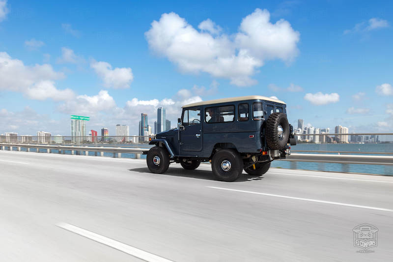 Aesthetically striking, the exterior of the 1984 Toyota Land Cruiser FJ43 comes in Venetian Blue, a colour which takes its design inspiration from a certain 1987 Porsche 911. This eye-catching and visually superior colour carries on into the cabin of the car, where it has a striking contrast with the saddle vinyl trim. To the exterior of the steed, you’ll discover a steel hardtop and four super-tough 33” BF Goodrich tyres – ideally suited for all-terrain, all-weather driving and an unparalleled overall performance.