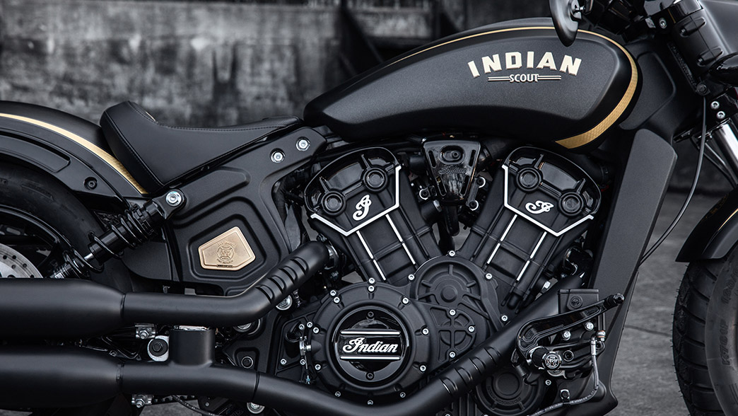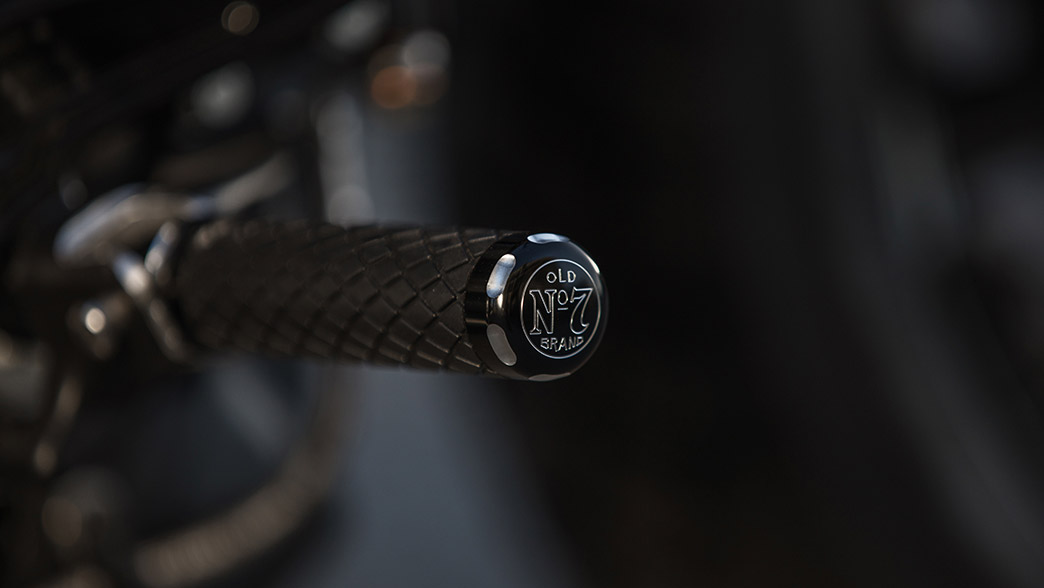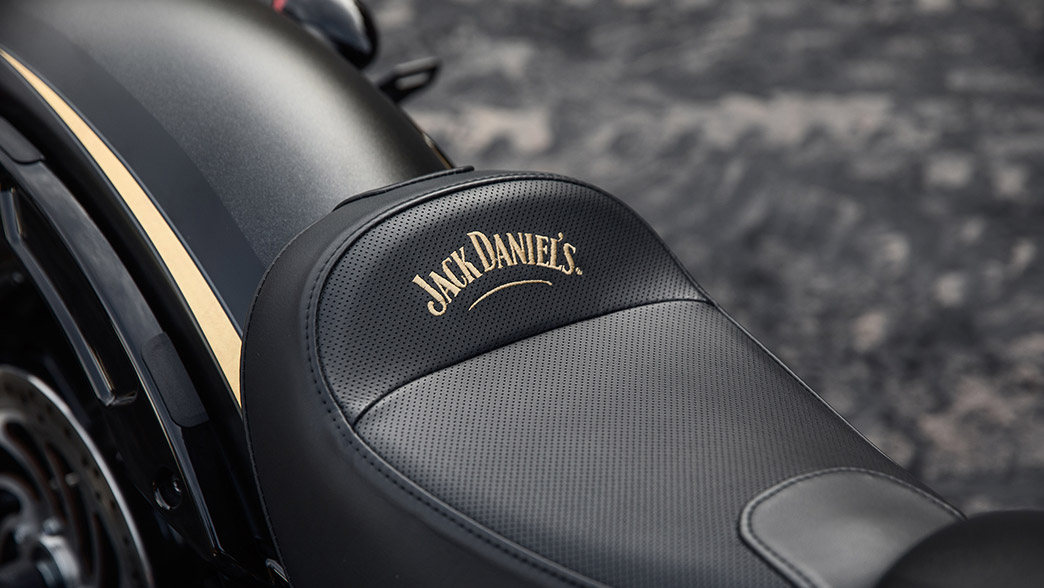 Everywhere you look with the Jack Daniel’s®Limited Edition Indian®Scout® Bobber you’ll discover amazing design features which add to the performance and visual appeal of the bike. This includes fully blacked-out in premium finishes with gloss black valve covers, hand levers, rear fender struts, and exhaust tips and real 24 karat gold graphics on the tank and fenders, including the Jack Daniel’s®Fire Brigade emblem on the tank and the Jack Daniel’s® “Bottles and Throttles Don’t Mix” reminder on the front fender.
