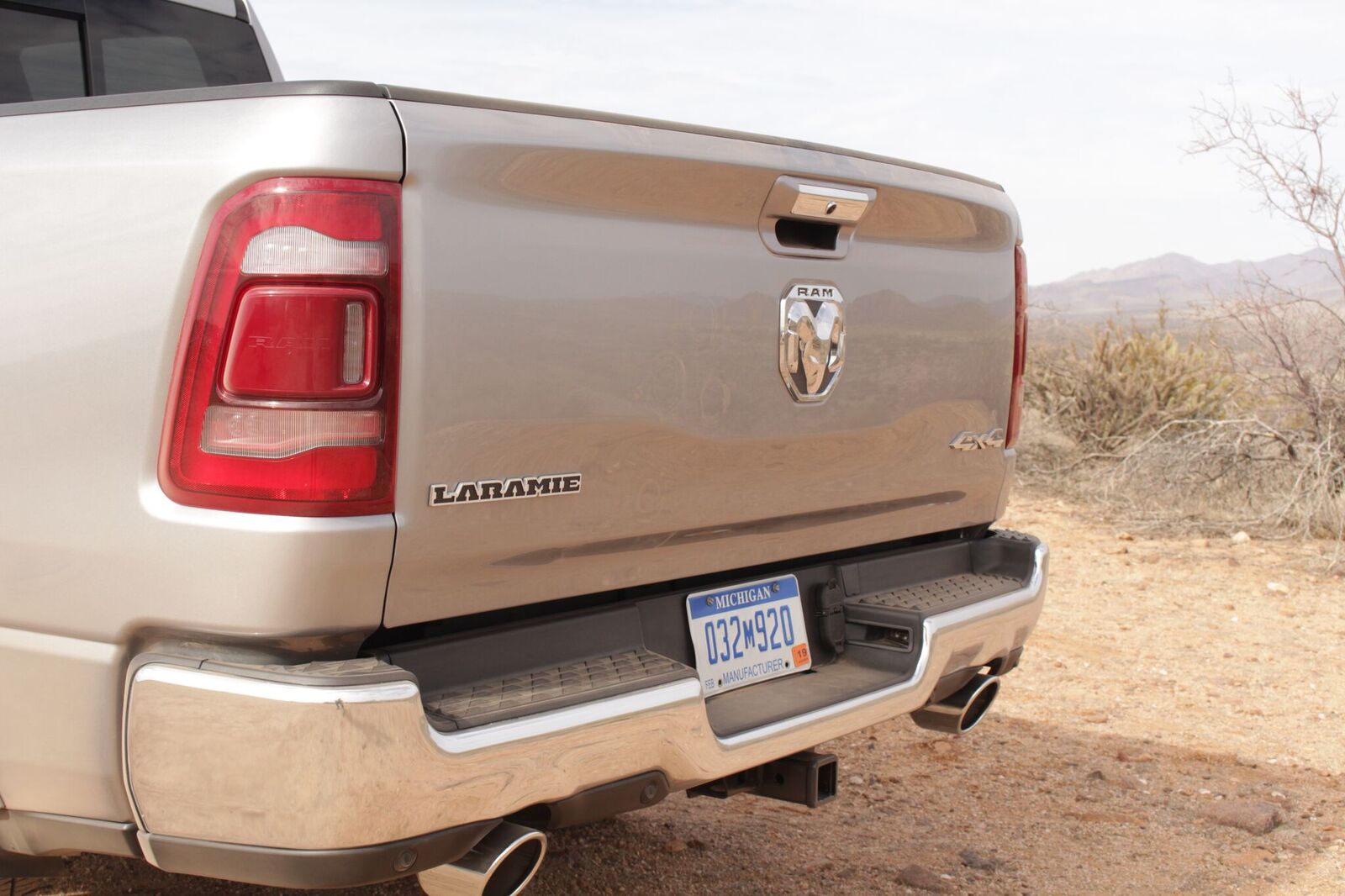 For getting off the beaten path, you can either buy a 1500 with the Off-Road Package, or you can buy the Ram 1500 Rebel, which comes with a one-inch increase in ride height, Bilstein shocks in both the front and rear, an electronic locking differential, Goodyear Wrangler DuraTrac tires, and numerous skid plates for scraping over big rocks. The Off-Road Package has similar equipment with noticeable exclusions being the Bilstein shocks, Goodyear tires, and fewer skid plates.