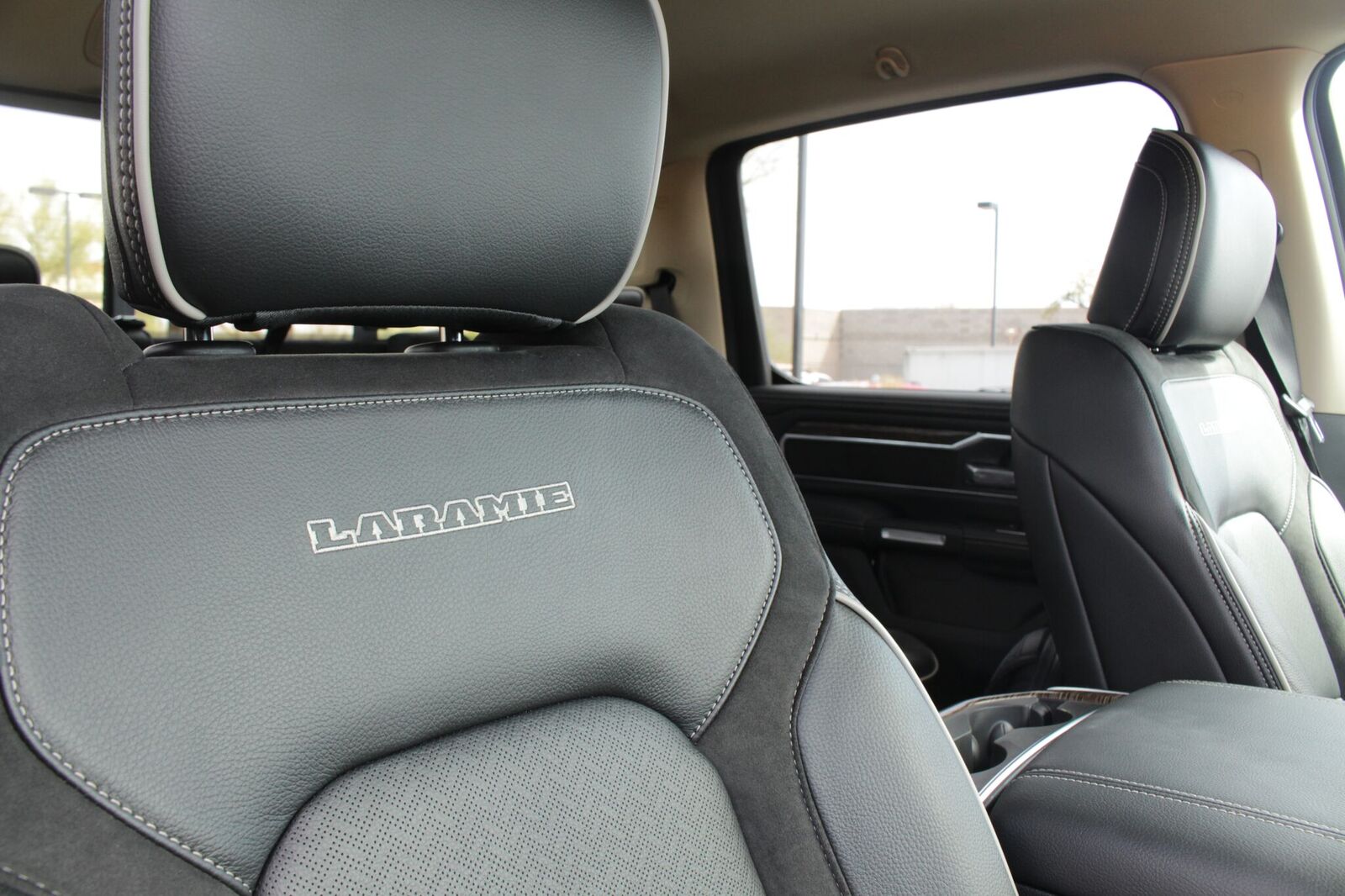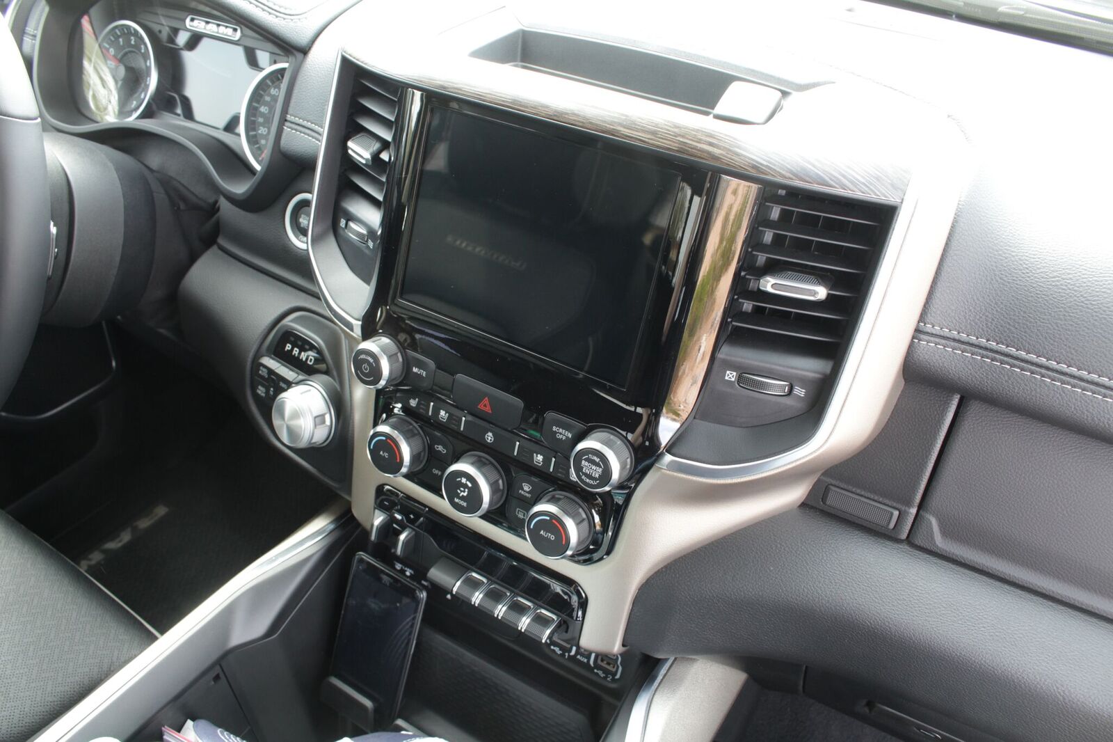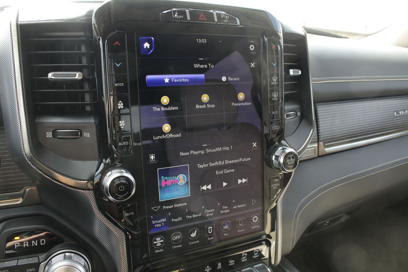 Inside, the vehicle features an attractive layout. In the top trim levels, you get real wood trim, top-notch leather and some beautiful touches on the doors and dash that hint at the model’s deep American roots. The big news for the Ram 1500 is its optional 12-inch infotainment screen. It’s the largest screen in any pickup truck and is a true pleasure to use. Ram also offers an 8.4-inch Uconnect system and a 5.0-inch system on lower trim levels.