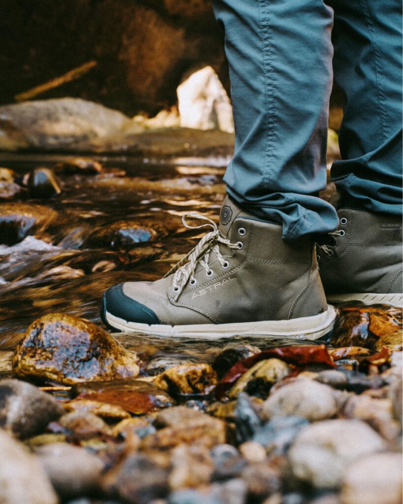 Originally designed for kayakers who needed grip on wet rocks, Astral has morphed into a lifestyle brand that Lems fans will adore. Their shoes are level footbed (zero drop), wide, and possess incredible water-shedding capabilities. The Hemp Loak is a stylish, casual sneaker that looks great at the brewery and performs on the trail.