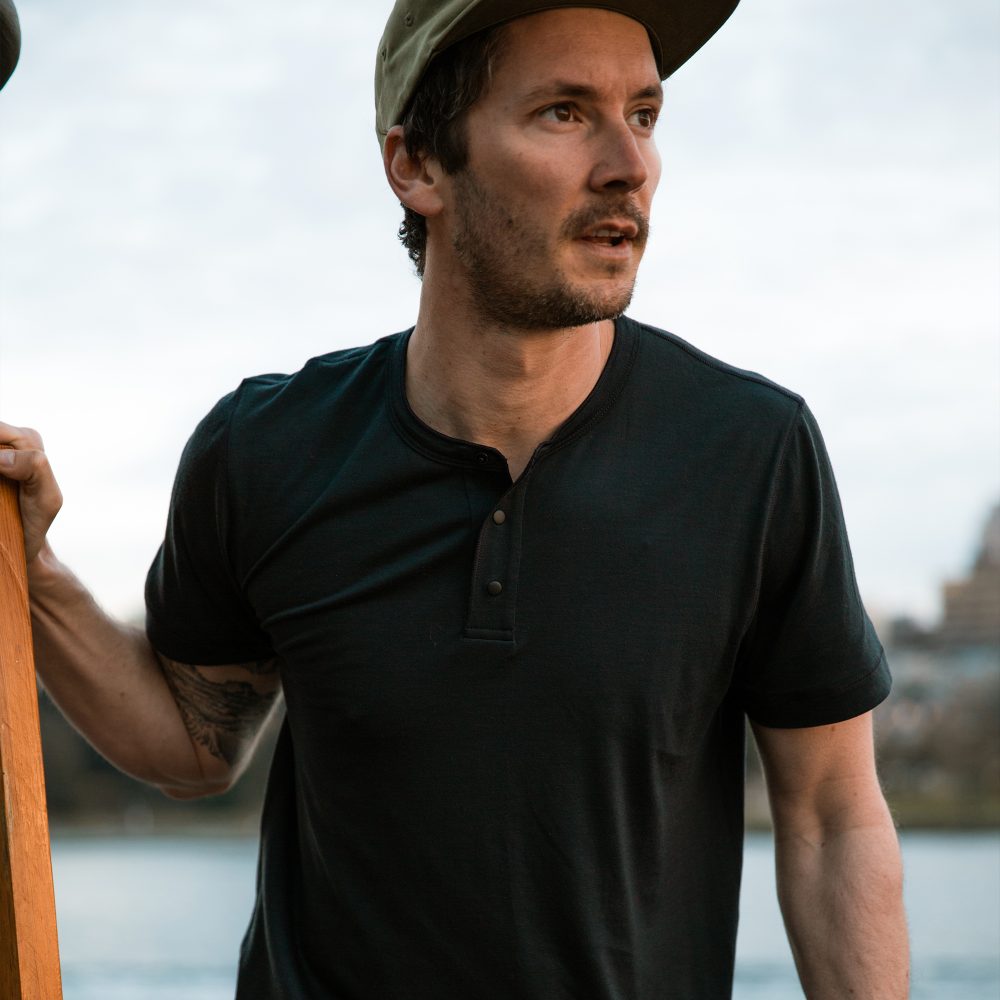 Undoubtedly the most adventure ready on our list, the Proof 72 Hour Merino SS Henley ($74) is cut from Proof’s premium 72 Hour merino fabric which combines unparalleled comfort with an out of this world technical performance. Each one has a three-button placket at neck with low-profile metal snaps in a matte black finish that adds a stealthy aesthetic to proceedings. The Proof 72 Hour Merino SS Henley has engineered fabric that harnesses the incredible natural properties of merino wool to wick moisture, resist odours, and regulate temperature. In addition, nylon reinforcement lets the merino fabric to be machine washed while retaining its shape for easy care throughout the life of the garment. ($74)