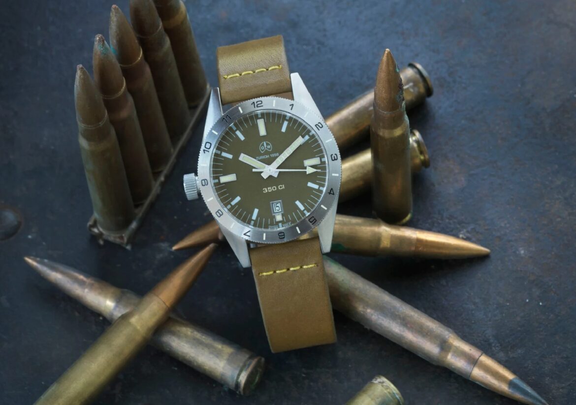 The OW C-1000 is the result of modern Swiss watchmaking. Powered by the robust modified ETA 2824-2 OW5, which is equipped with an Ollech & Wajs Zurich 1956 engraved main plate and OW machined rotor. The movement is housed in a 39.56mm, 316L stainless steel, and 1000m water-resistant case, which is stamped, machined and brushed in Jura, Switzerland.