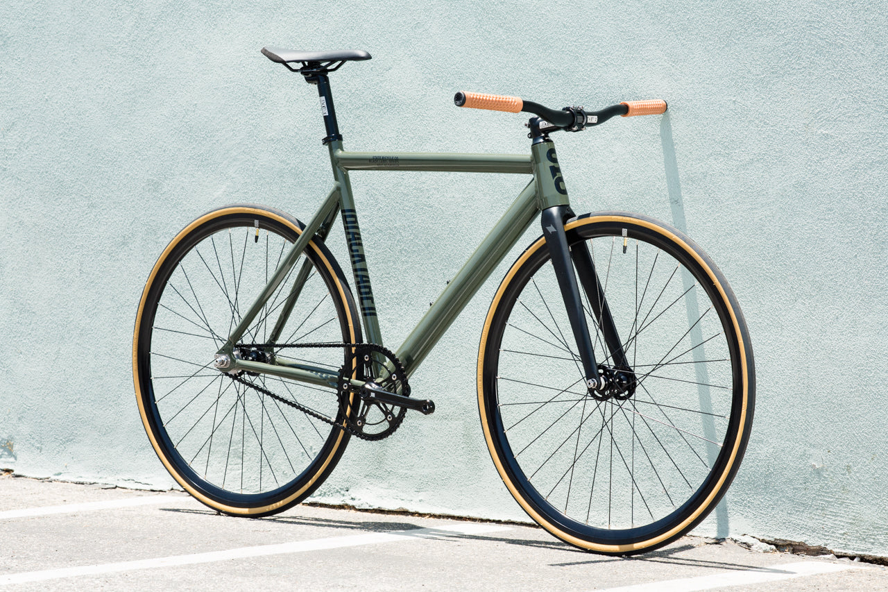 The 6061 Black Label Series in Army Green from State Bicycle Co ($699.99) is the perfect tool for navigating the streets. Built on an agile and ultra-light, double-butted 6061 Aluminium frame with a tapered head tube and featuring an Essor USA full carbon fork, the Black Label Series is a stiff and responsive ride. The CNC’d crank set is lightweight but rigid, featuring a 144 BCD that allows for a wide variety of chainring options.