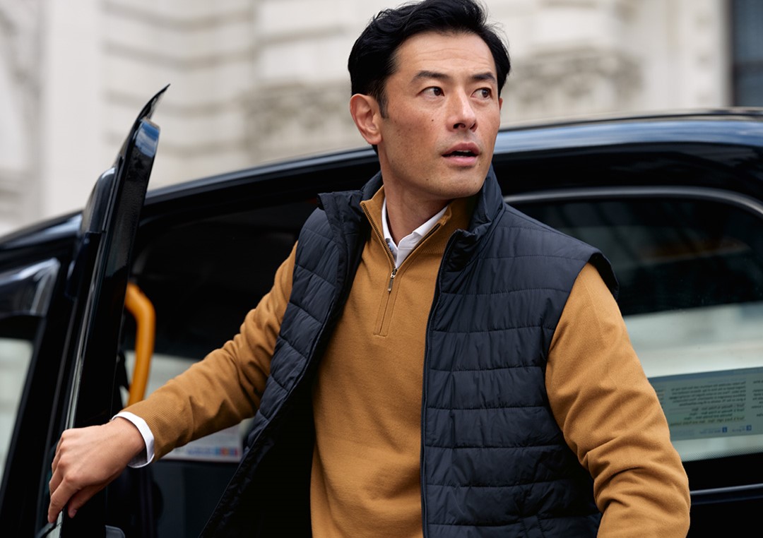 Offering a sophisticated approach to cool-weather comfort, this knitted gilet brings an elevated touch to your wardrobe. The front features subtle padding for added warmth, while the back showcases the refined look and insulating feel of Merino wool. With a versatile zip fastening, this style allows you to wear it open or closed, whether layered over a long-sleeved top or paired with a textured shirt.