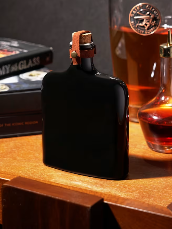 A flask so sophisticated you won’t want to tuck it away. Made of thick ceramic, this flask features a shiny, sleek body that fits and looks just right in your hand. A natural cork stopper conceals the white interior, which holds over eight ounces of your favourite drink.