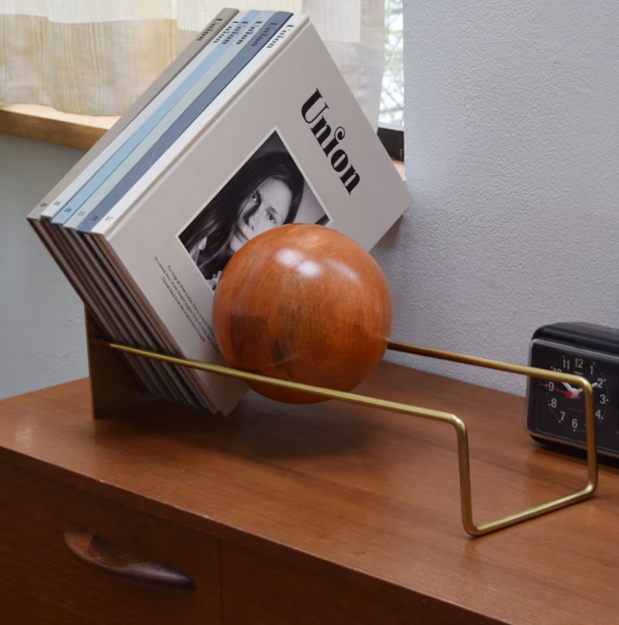 Display your all-time favourites with this architectural Slope Bookend from DETAIL. A mango wooden ball slides on a slightly sloped, iron frame, presenting a minimalist yet sturdy storage solution for books, magazines, and even records.