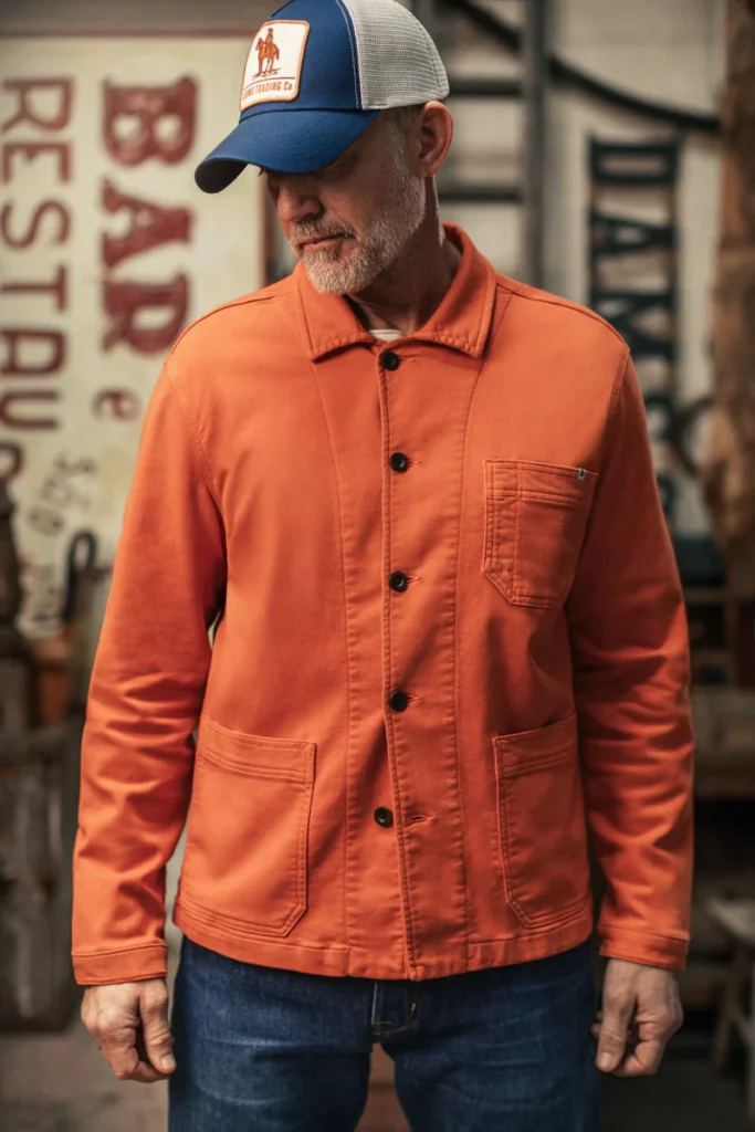 The Red Bolt Chore Jacket is a cotton chore jacket with added stretch, designed to take on daily use and show it over time. It’s cut regular through the body, easy to layer, and solid enough to stand on its own.