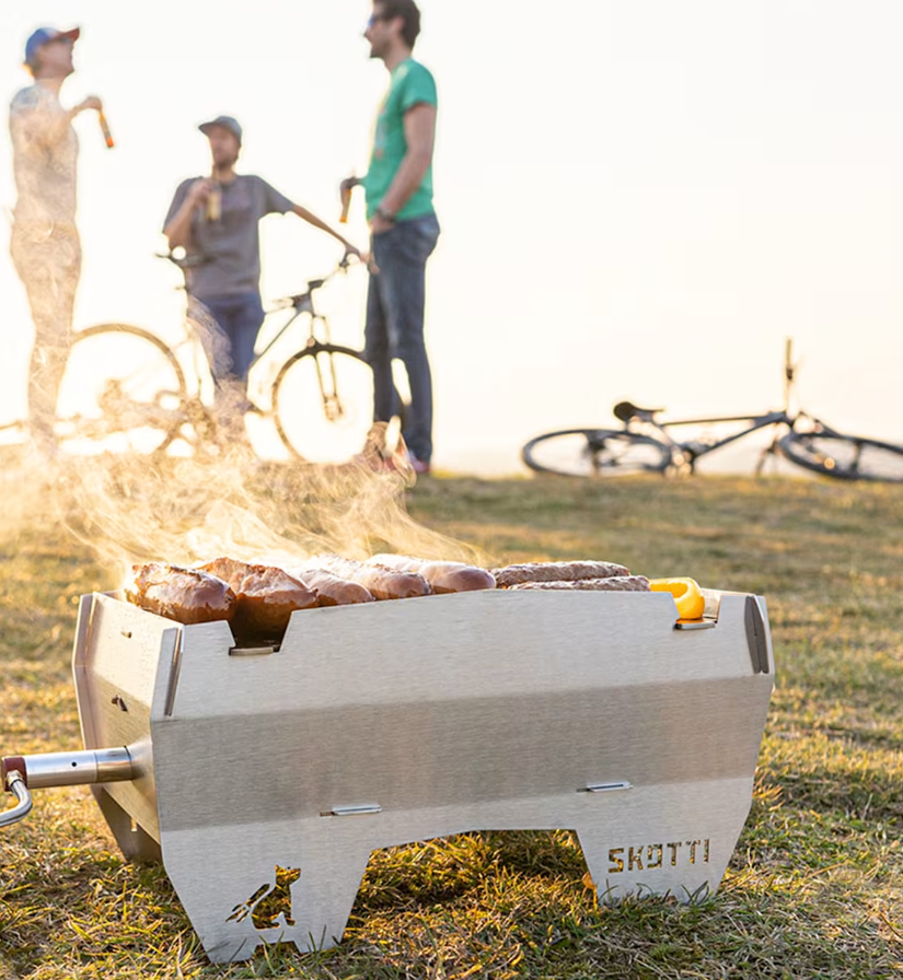 Everything you need to completely level up your outdoor cooking capabilities is right here. The Skotti Grill is a versatile, powerful, and oh-so portable cooking companion that allows you to grill up your favorites just about anywhere.